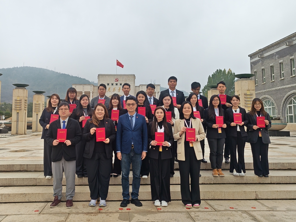 研修計劃結業式於10月24日上午在中國延安幹部學院舉行。學員代表趙蘭瑛女士在結業式上進行總結分享,她感謝主辦單位精心組織是次活動,使來自澳門不同領域的青年社區工作者得以親身感悟獨特的延安精神,踏尋革命先輩的奮鬥足跡。在為期十一天的理論課程與實地考察中,學員們深刻領會到堅定正確的政治方向、解放思想與實事求是的思想路線、全心全意為人民服務的根本宗旨、自力更生與艱苦奮鬥的精神價值,以及愛國主義的優良傳統、群眾路線的工作方法、批評與自我批評的優良作風。這些寶貴精神對當前及未來澳門社區工作,具有重要的現實意義與指導價值。期望在未來兩地能繼續深化社區工作交流,共同探索社區發展與優化的路徑,為國家發展匯聚更多來自基層的積極力量。隨後,中國延安幹部學院對外交流與培訓開發部涉外培訓處張瑞軒副處長為學員頒發結業證書並合影留念。