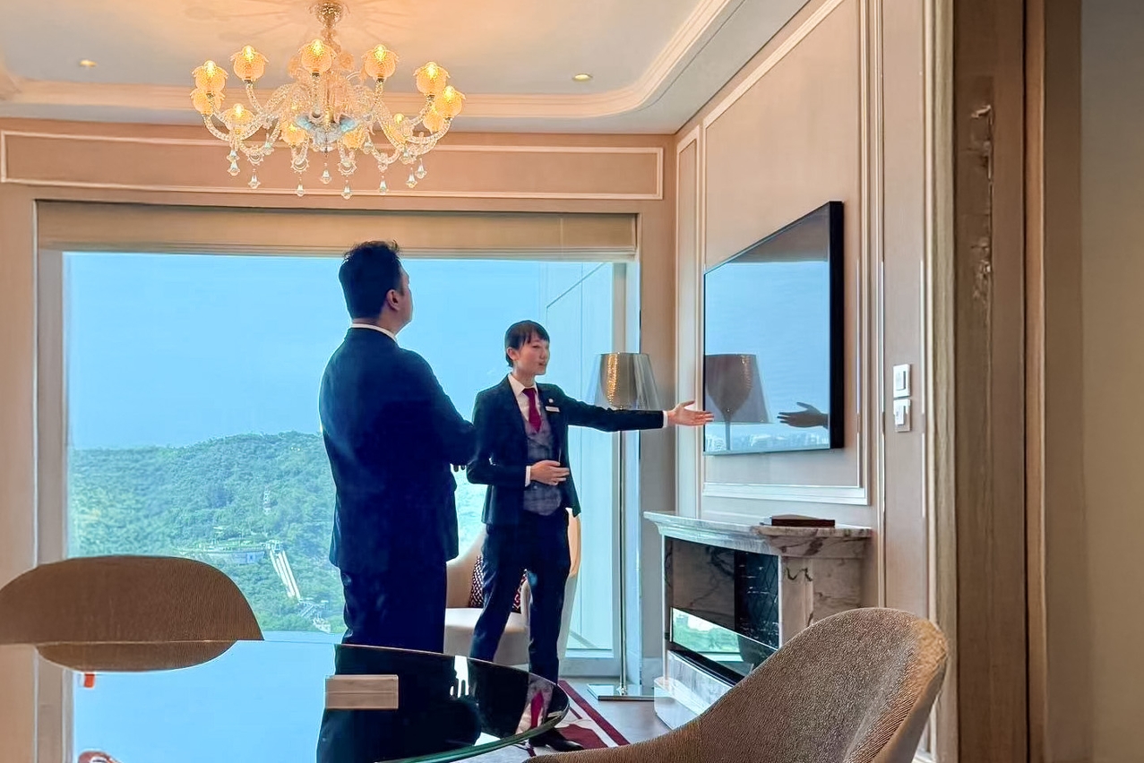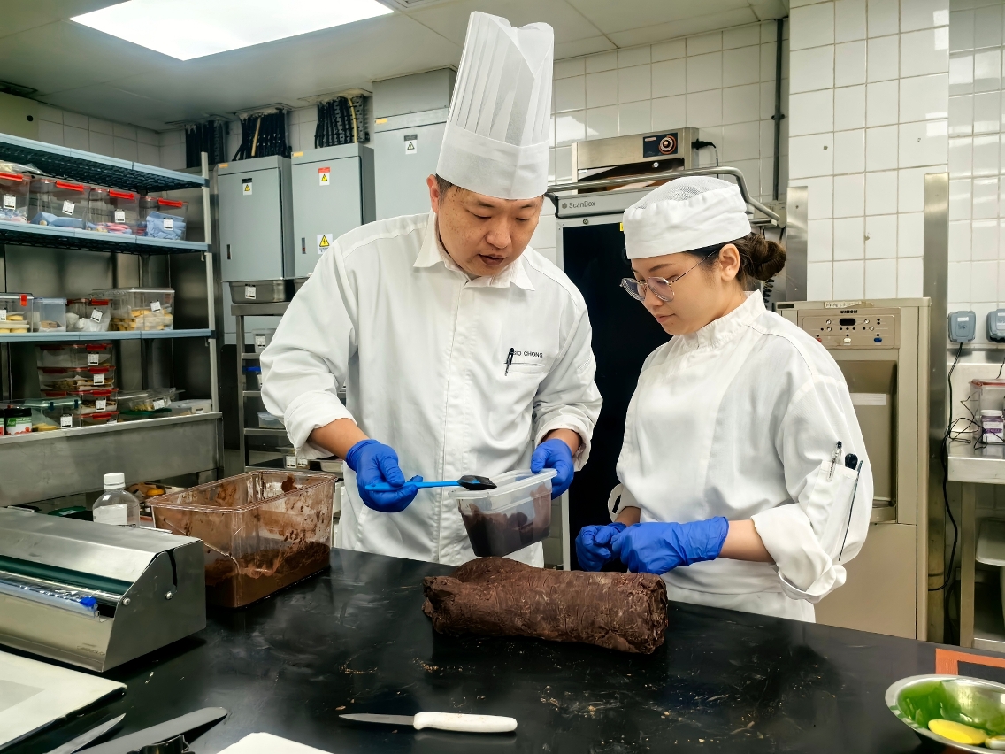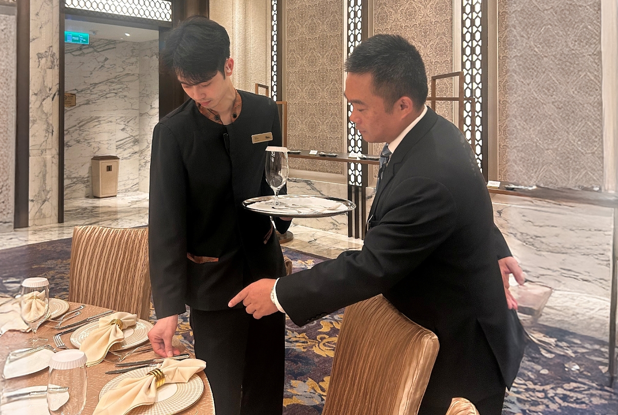 僱員於入職後,企業將依據崗位實務需求,開展系統性分階段培訓,內容涵蓋企業文化、軟技能、專業技能及考證。此類“產教融合”的培訓模式,既能為企業培育符合發展需求的本地人才,也為僱員提供了工作實踐、專業技能學習及專業認證的機會。培訓內容除企業內部培訓外,還包含與崗位相關的培訓及考證項目,具體包括職業素養、職業安全培訓、酒店及餐飲業職安卡、情商管理、《福布斯旅遊指南》培訓系列、卓越服務培訓系列、國際禮賓禮儀接待技巧、餐飲服務運營、MORS澳門職業技能認可基準中餐侍應生、WSET®葡萄酒第二級認證、中餐/西餐廚藝培訓、粵澳一試多證餐廳服務員認證等;藉著“產教融合”的培訓模式,不僅為行業未來發展注入新動力,更有效提升僱員專業技能水平與綜合服務素質。