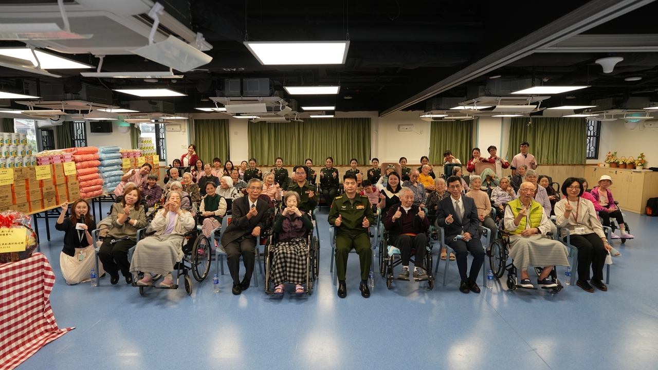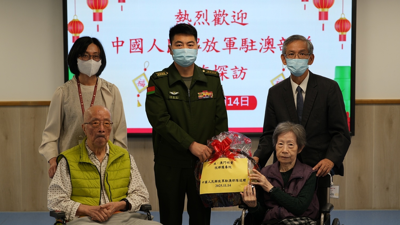 為感謝長者對本澳社會的貢獻,弘揚敬老崇孝的社會價值,中國人民解放軍駐澳門部隊政治工作部副主任劉陳長與官兵代表,在澳門特別行政區政府社會工作局局長韓衛的陪同下,於11月14日下午到訪澳門明愛屬下的悅暉護養院探訪及關懷長者。