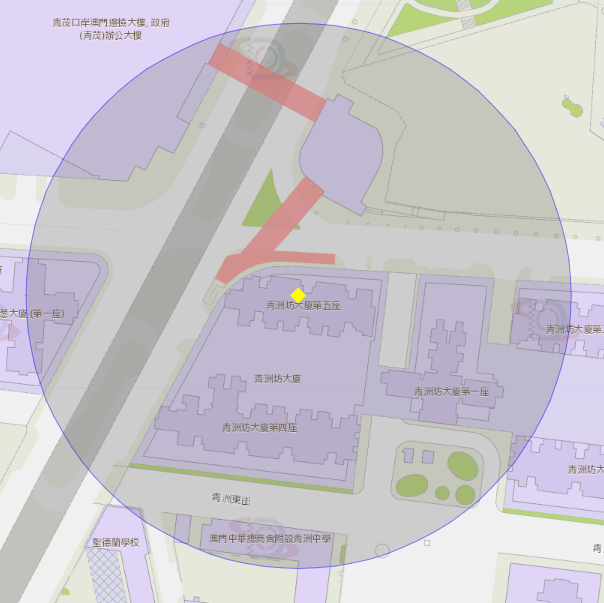 青洲新街青洲坊大廈第三座附近風險區域100米半徑範圍