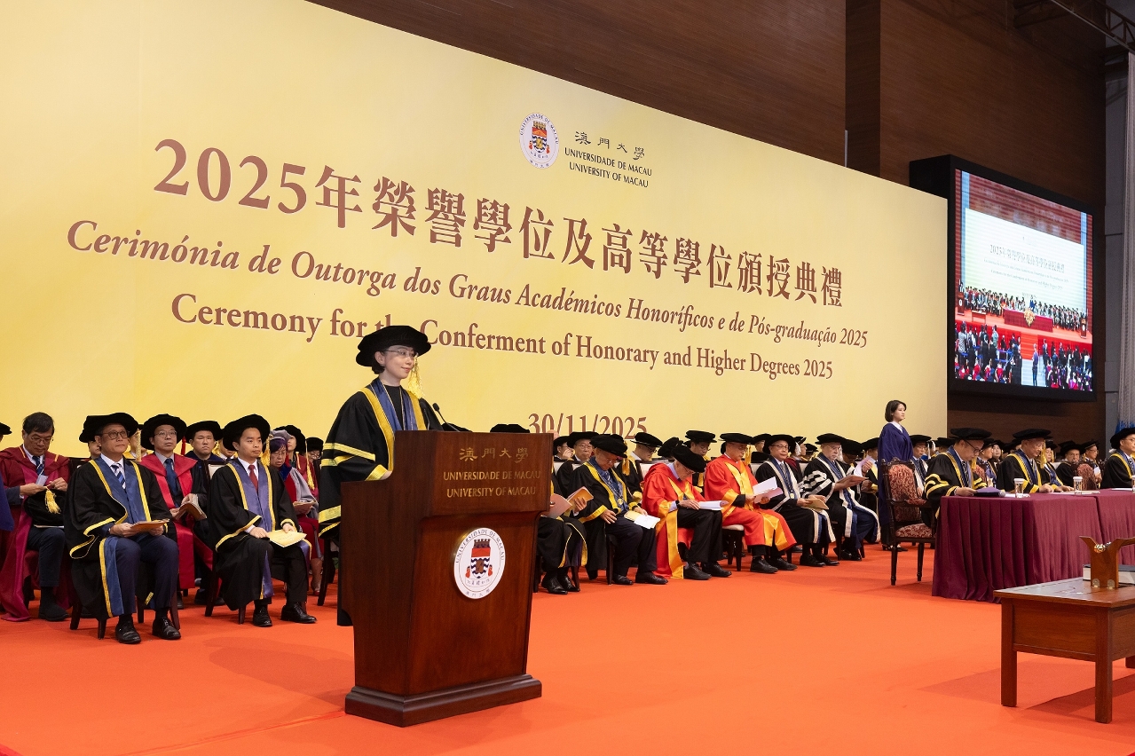 澳門大學今(30)日舉行“2025年榮譽學位及高等學位頒授典禮”。今年,澳大共有超過2,240名博士學位、碩士學位和學士後文憑課程的學生畢業。澳門特別行政區行政長官兼澳大校監代表、社會文化司司長柯嵐表示,澳大不僅築牢了澳門高等教育的堅實根基,更以豐碩的辦學成果,成為推動教育進步與科研發展的重要力量。
