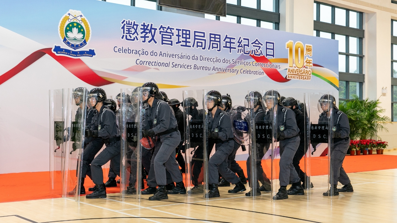 “懲教日”活動中,保安司司長陳子勁檢閱獄警隊伍,同時對2025年工作表現傑出的團隊和99名工作人員頒發嘉獎狀,向榮休及長期服務的76名工作人員致送紀念章,以及向38名合作伙伴及愛心僱主致送感謝狀,感謝他們一直以來身體力行支持及幫助在囚人及院生重建新生。監獄的機動應變隊及防暴隊進行了防暴鎮暴現場演示,充份展現了獄警隊伍訓練有素及應急處突能力。