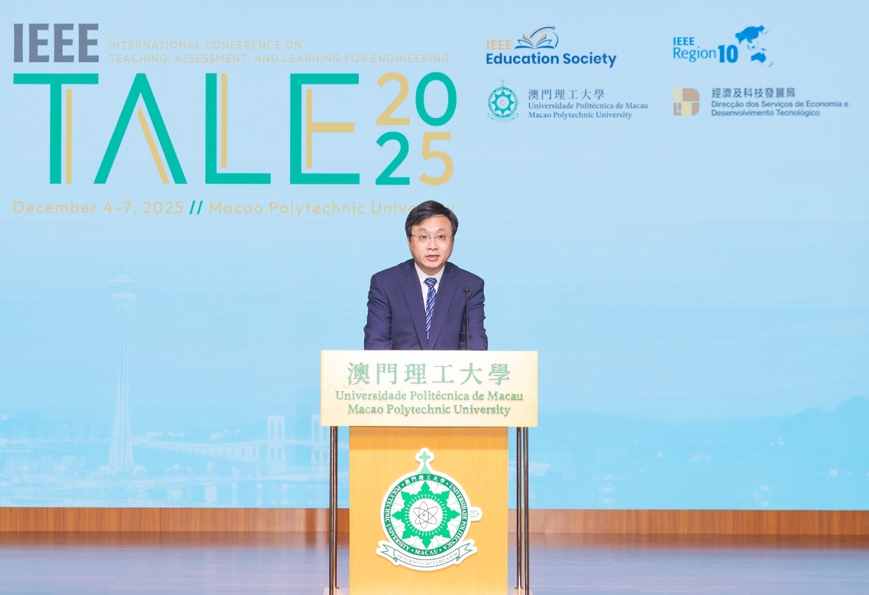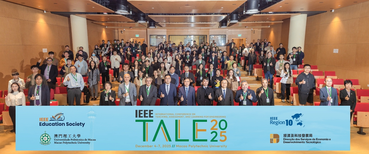 為拓展國際合作,由澳門理工大學、國際電機及電子工程師學會教育協會(IEEE Education Society)、國際電機及電子工程師學會亞太區(IEEE Region 10)聯合主辦,澳門特區政府經濟及科技發展局支持的國際頂尖會議、 IEEE 教育學會亞太地區旗艦學術盛會 —— IEEE TALE 2025工程教學、評估和學習國際教育研討會(International Conference on Teaching, Assessment, and Learning for Engineering)於2025年12月4日在澳門理工大學盛大召開。本屆會議以“教育技術與 STEAM 整合教育創新"為核心主題,吸引來自全球高等教育、職業教育、企業、醫療等多領域的數百位專家學者齊聚澳門,圍繞數字技術驅動下的教育發展新路徑展開深度研討,搭建跨地域、跨領域的國際學術交流與務實合作平台。