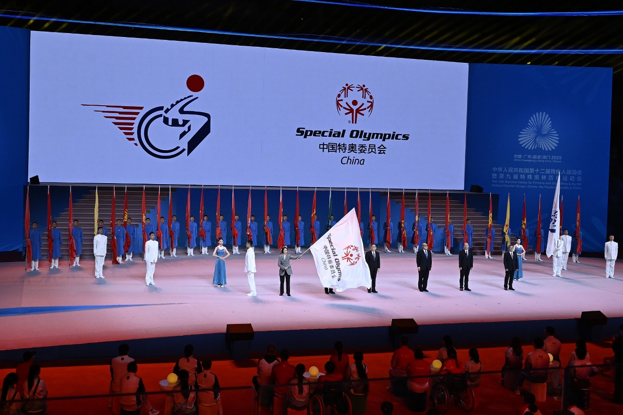 閉幕活動上,柯嵐、陳國基、廣東省委常委王曦、國家體育總局副局長佟立新、中國殘聯理事長周長奎先後接過殘運會、特奧會會旗,並移交給下一屆殘特奧會承辦地代表、湖南省委常委王道席。下一屆殘特奧會將於2029年在湖南舉行。