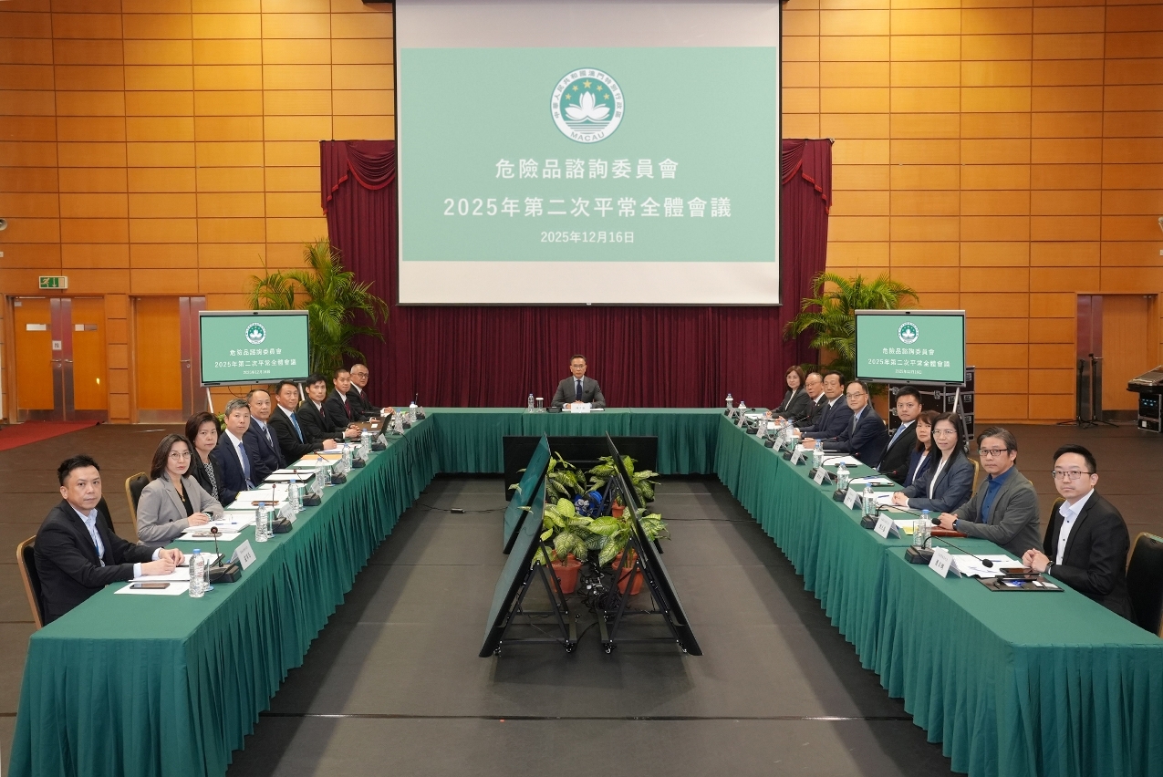 於2025年12月16日下午,危險品諮詢委員會(下稱委員會)在消防局總部暨西灣湖行動站舉行2025年度第二次平常全體會議。會議由委員會主席保安司司長陳子勁主持,會上各成員圍繞多項議題進行坦誠交流和探討。