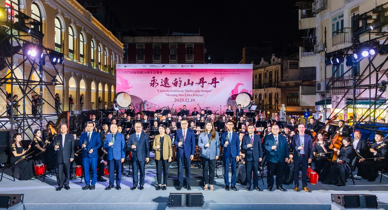 由文化局主辦,澳門樂團有限公司承辦的慶祝澳門回歸祖國26周年音樂會《永遠的山丹丹》於12月19日在澳門大三巴牌坊前地舉行,同時舉行2025年“東亞文化之都‧中國澳門”活動年閉幕儀式,以氣勢恢宏的民族音樂盛典慶賀回歸,並為活動年劃上圓滿句號。