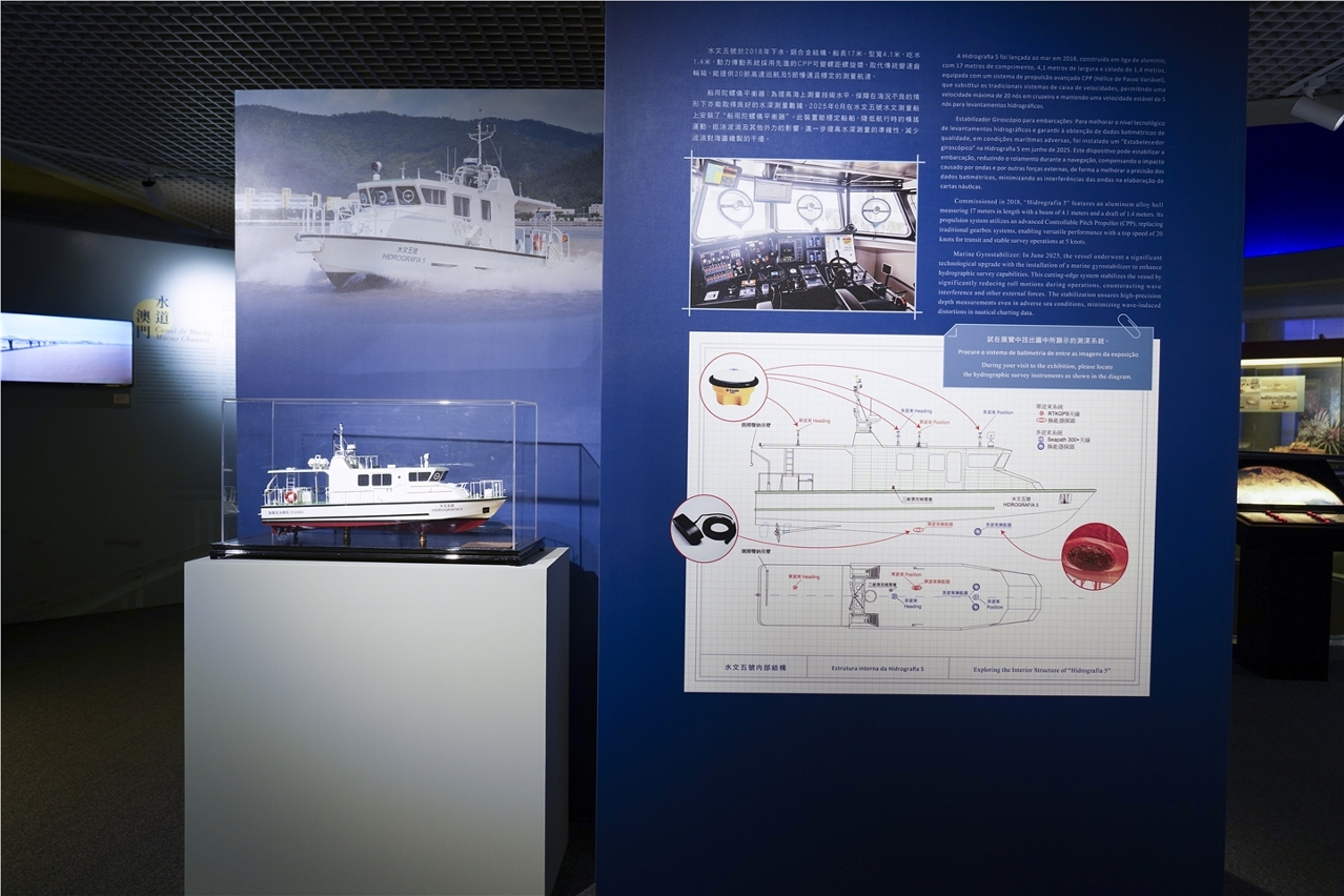 海事及水務局轄下的澳門東望洋燈塔,是遠東最早的現代化燈塔,自1865年9月啟用運作至今,其外觀及內部結構經歷了不少改變。專題展除了展出了東望洋燈塔的燈具示意模型和其演變歷程,還有百年來的海圖、水文測量工具、舊本潮汐表、航標燈具等展品,現場更設有“鉛錘測深”的實物互動裝置體驗,內容豐富。