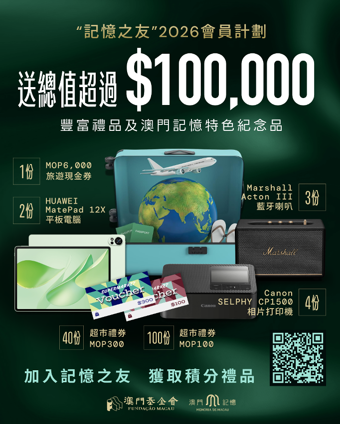 澳門基金會誠邀市民登錄“澳門記憶”文史網,成為“記憶之友”,透過參與各項線上線下活動,逐步累積屬於自己的記憶“里程”。您的每一次點擊、每一份參與,都是保存澳門珍貴記憶的重要一環,讓歷史文化不僅被記錄,更能在社區與生活中持續傳承。有關活動詳情請參閱“澳門記憶”文史網的“記憶之友年度積分回饋計劃”項目專頁(www.macaumemory.mo/interaction/membership/index)。