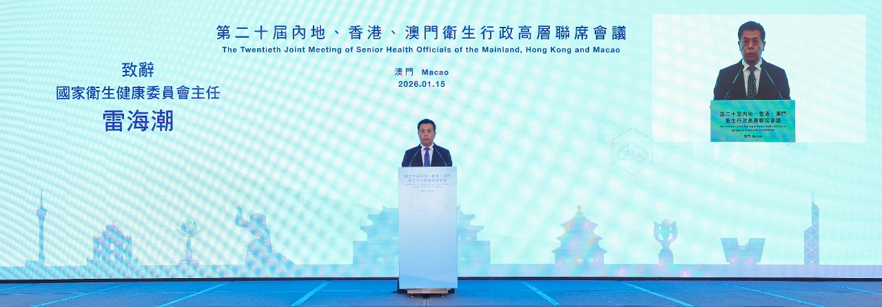 在會議上,雷海潮主任致辭時回顧“十四五”時期內地衛生健康工作成效,圍繞服務融通、人才融通、科技創新等方面介紹2025年三地衛生健康交流合作情況。他表示,中國共產黨二十屆四中全會為下一個五年發展規劃謀篇佈局。全會作出加快建設健康中國、促進人口高質量發展等重要決策部署,對促進香港特別行政區、澳門特別行政區長期繁榮穩定作出重要安排。對於2026年三地衛生健康工作,國家衛生健康委將落實中央要求,全力支持港澳發展,繼續密切交流,加強政策和項目支持。希望港澳特區深刻把握國家發展戰略,發揮獨特優勢,繼續參與內地重點領域工作,包括補強專業專科和基層短板弱項、康復護理擴容提升工程、為民服務十件實事等。積極支持粵港澳協同發力,進一步建設“健康灣區”。希望港澳發揮背靠祖國、聯通世界的獨特優勢,助力衛生健康領域高水平對外開放。