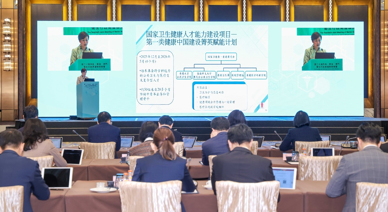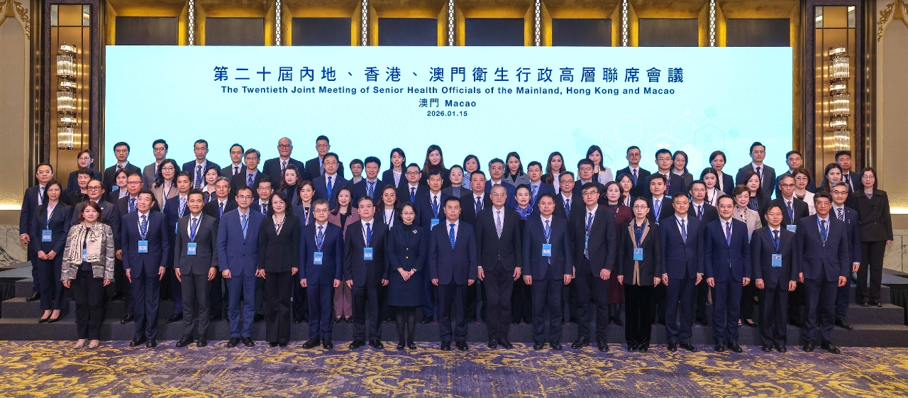 “第20屆內地、香港、澳門衛生行政高層聯席會議”於昨(15)日在澳門順利舉行。國家衛生健康委員會主任雷海潮、香港特別行政區政府醫務衞生局局長盧寵茂,以及澳門特別行政區政府社會文化司司長柯嵐分別率領內地、香港及澳門的代表團出席參會;此外,中央港澳工作辦公室、國務院港澳事務辦公室五局局長趙旭東、中央人民政府駐澳門特別行政區聯絡辦公室副秘書長兼社會發展部部長黃華蓋、廣東省衛生健康委員會代表亦參會;而協和澳門醫學中心、鏡湖醫院及科大醫院的代表則是首次參會,進一步拓展會議的參與度。本屆會議匯聚三地70多名衛生行政高層及醫療專家,圍繞“醫防管交叉複合型戰略人才培養”、“推動關口前移共建健康社區”和“智慧醫療在衛生健康領域應用”等議題,展開深入交流、分享經驗及探討未來合作方向。