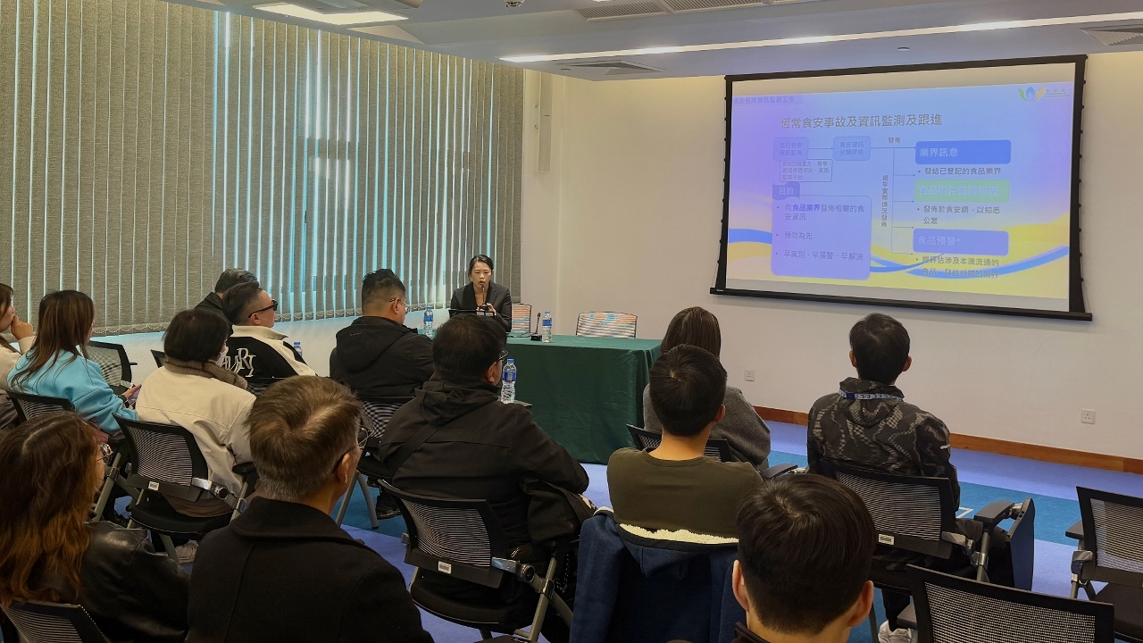市政署食品安全廳代表向參加者介紹了 “預警平台"的主要功能,食品業界可透過 “商社通"登入平台及直接導入預包裝食品資料,並可透過平台管理接收食品預警之聯絡方式;同時,市政署食安人員可透過平台就食安事件作出風險評估識別,並一鍵發送食品預警和手機短訊提示,讓食品業界可迅速應對,以達致食安風險 “早識別、早預警、早解決"的目的,完善食安監測評估及食品預警發佈流程的有效運作。
