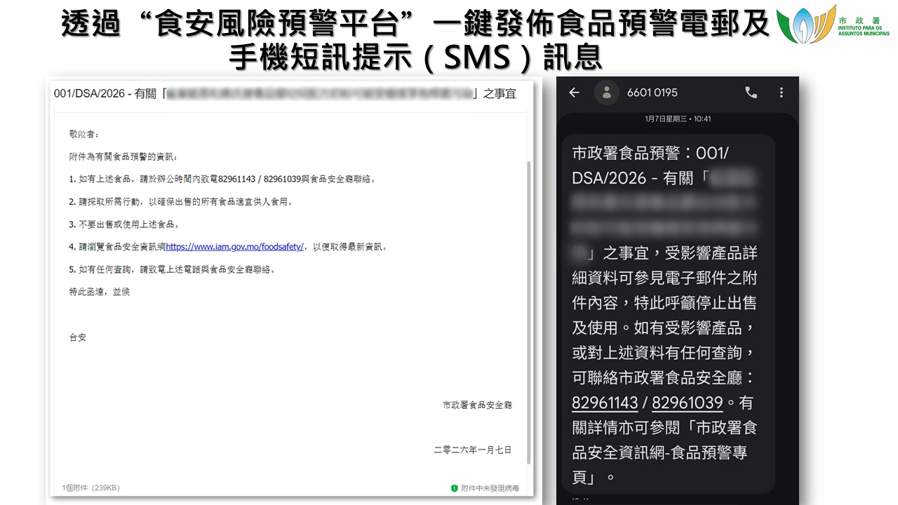 食品業界透過有關 “預警平台",有助更便捷提交流通市場預包裝食品的資料及接收食品預警,增加食安監測評估及食品預警發佈的效率。市政署冀與業界攜手,配合特區政府電子政務發展,利用電子服務提升食安監管及評估工作,共同維護本澳食品安全。