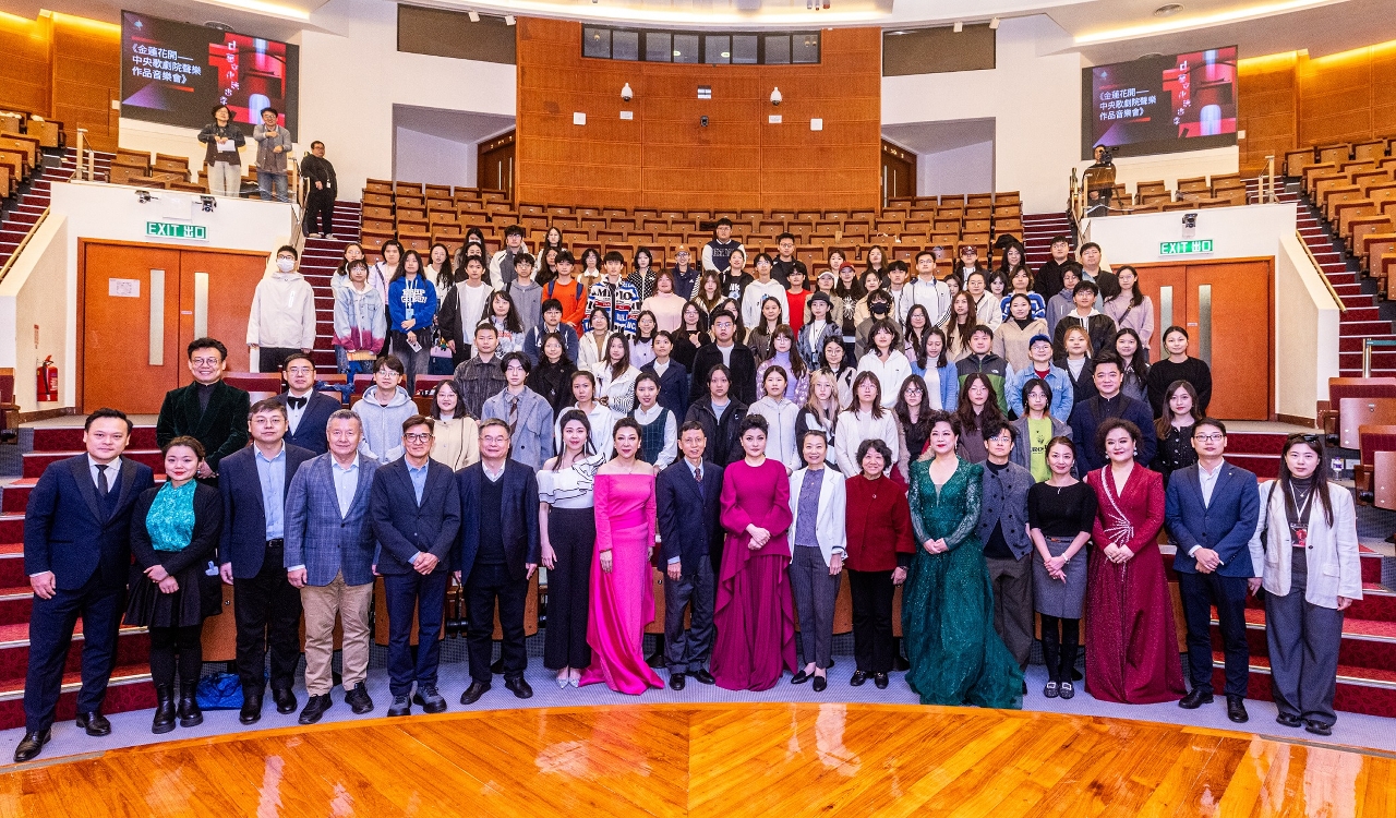 《金蓮花開——中央歌劇院聲樂作品音樂會》薈萃中外聲樂精品,曲目豐富,陣容鼎盛。一眾藝術家以精湛技藝,帶領觀眾展開一段橫跨東西的音樂之旅。師生們不僅欣賞到威爾第、普契尼、比才等大師的經典歌劇選段,感受西方音樂的戲劇張力,亦品味了《大江東去》《洪湖水浪打浪》等中國名作,體驗民族旋律的深厚底蘊。演出期間氣氛熱烈,藝術家更與學生親切互動,交流切磋,音樂會在經典《飲酒歌》的歡騰合唱聲中圓滿落幕。中央人民政府駐澳門特別行政區聯絡辦公室宣傳文體部副部長殷汝濤、白冰,澳門特別行政區政府文化局副局長鄭繼明,中國對外文化集團有限公司董事長郭利群、澳門城市大學校董會副主席兼藝術團團長孔繁清,以及澳門城市大學校長劉駿教授等嘉賓出席了在澳門城市大學舉行的首場音樂會,與師生共同見證這場文化盛事。