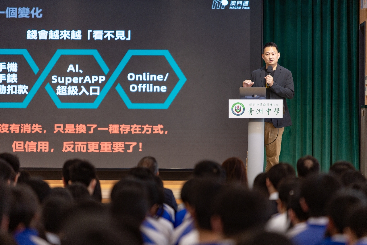 在互動交流環節,學生們踴躍提問,圍繞個人發展及如何參與本地金融科技創新、提升信用與科技素養的實際途徑、數位支付普及下的長者關懷,以及個人資料安全等議題。主講嘉賓回應指出,澳門正逐步推動產學合作與金融素養教育,鼓勵青年主動接觸真實場景;並勉勵同學們保持對新技術的敏銳觸覺與持續學習的熱情,在快速變遷的金融科技環境中,應兼具技術能力與社會價值創造力。