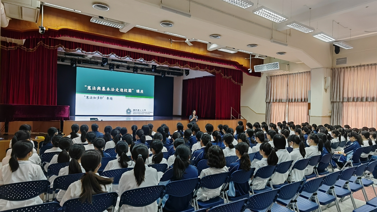 澳門理工大學積極推動澳門特區政府持續加強愛國主義教育的施政部署,舉辦一系列“憲法與基本法走進校園”活動。澳理大“一國兩制”研究中心走進澳門多間中學校園宣講,助力中學生進一步加深對國家憲法、澳門基本法和維護國家安全法的認識,營造知法、守法、護法的良好環境,弘揚和傳承愛國愛澳核心價值。澳理大“一國兩制”研究中心於2025全年共舉辦33場講座,吸引近30所中學6000多名中學生參與,反應熱烈。