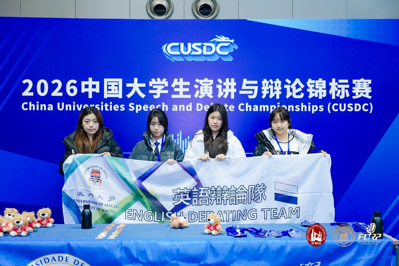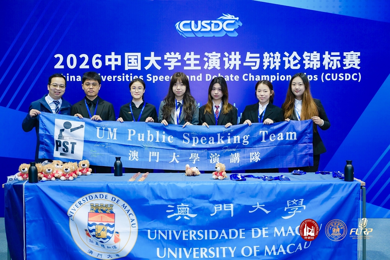澳門大學演講隊及英語辯論隊在上海舉辦的“2026中國大學生演講與辯論錦標賽”中收獲一項亞軍、三項季軍、兩項一等奬、一項二等獎及一項三等奬,是比賽當中獲獎最多的大學。其中三名澳大學生憑藉優異表現,獲選加入大學組演講國家隊,代表中國參與全球英語演講比賽。