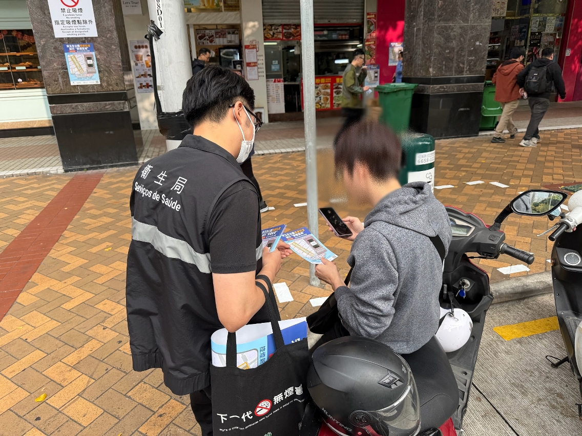 為貫徹落實《健康澳門藍圖》中降低煙草使用率的目標,特區政府以立法、執法、教育宣傳及鼓勵戒煙等多管齊下策略,執行各項控煙政策和措施。今(12)日起,於宋玉生公園周邊街道試行“禁煙區域”,除“指定吸煙點”外,“禁煙區域”內禁止吸煙,以保障行人健康,減少邊走邊吸煙的行為。截至今(12)日下午5時30分,衛生局工作人員合共向223名居民及旅客進行宣傳教育及作出勸喻,並向1名於宋玉生公園內的違法吸煙者作出控訴。整體而言,居民對措施表示支持和配合,首日實施情況暢順。