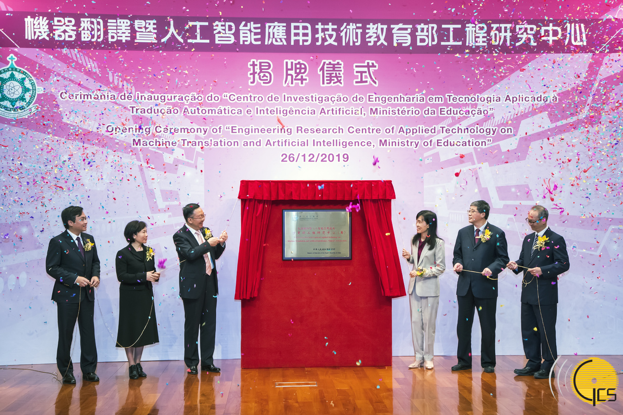 • The Secretary for Social Affairs and Culture, Ms Ao Ieong U, attends the opening ceremony of “Engineering Research Centre of Applied Technology on Machine Translation and Artificial Intelligence, Ministry of Education”.