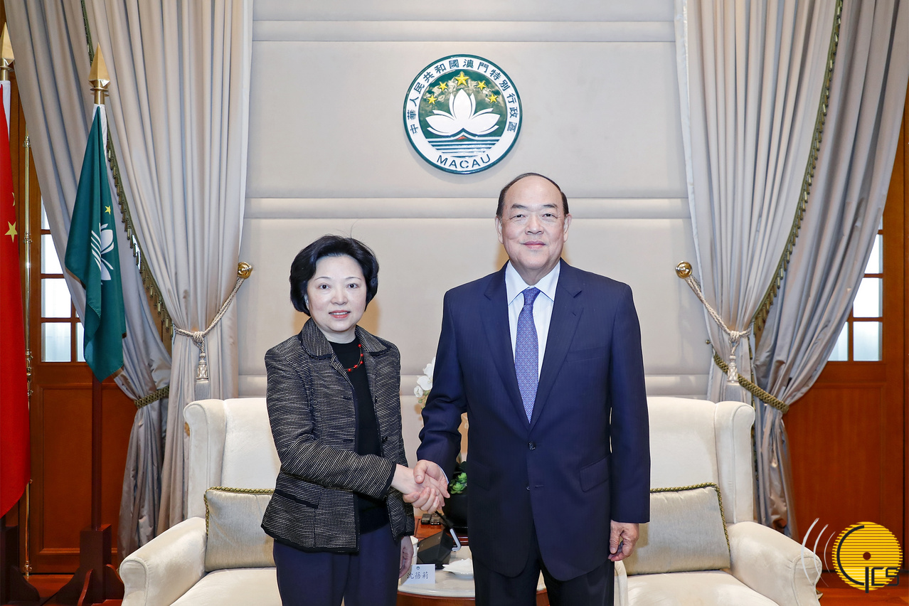 • The Chief Executive, Mr Ho Iat Seng, meets with the Commissioner of the Office of the Commissioner of the Ministry of Foreign Affairs of the People’s Republic of China in the Macao SAR, Ms Shen Beili, at the Government Headquarters.
