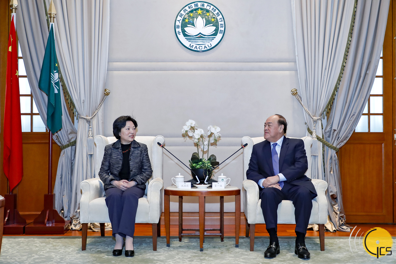 The Chief Executive, Mr Ho Iat Seng, meets with the Commissioner of the Office of the Commissioner of the Ministry of Foreign Affairs of the People’s Republic of China in the Macao SAR, Ms Shen Beili, at the Government Headquarters.