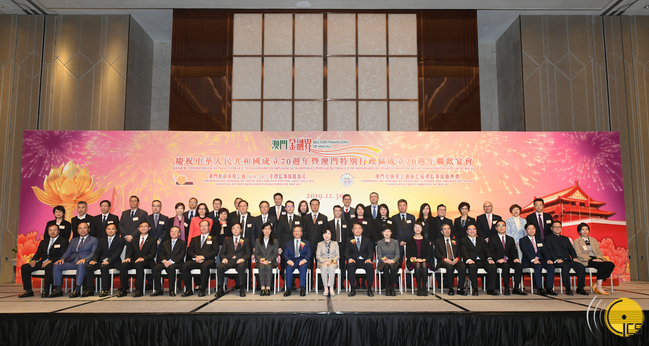 The Secretary for Economy and Finance, Mr Lei Wai Nong and the Secretary for Social Affairs and Culture, Ms Ao Ieong U, attend a reception hosted by the local financial sector o celebrate the 70th anniversary of the founding of the People's Republic of China and the 20th anniversary of the establishment of the Macao Special Administrative Region.
