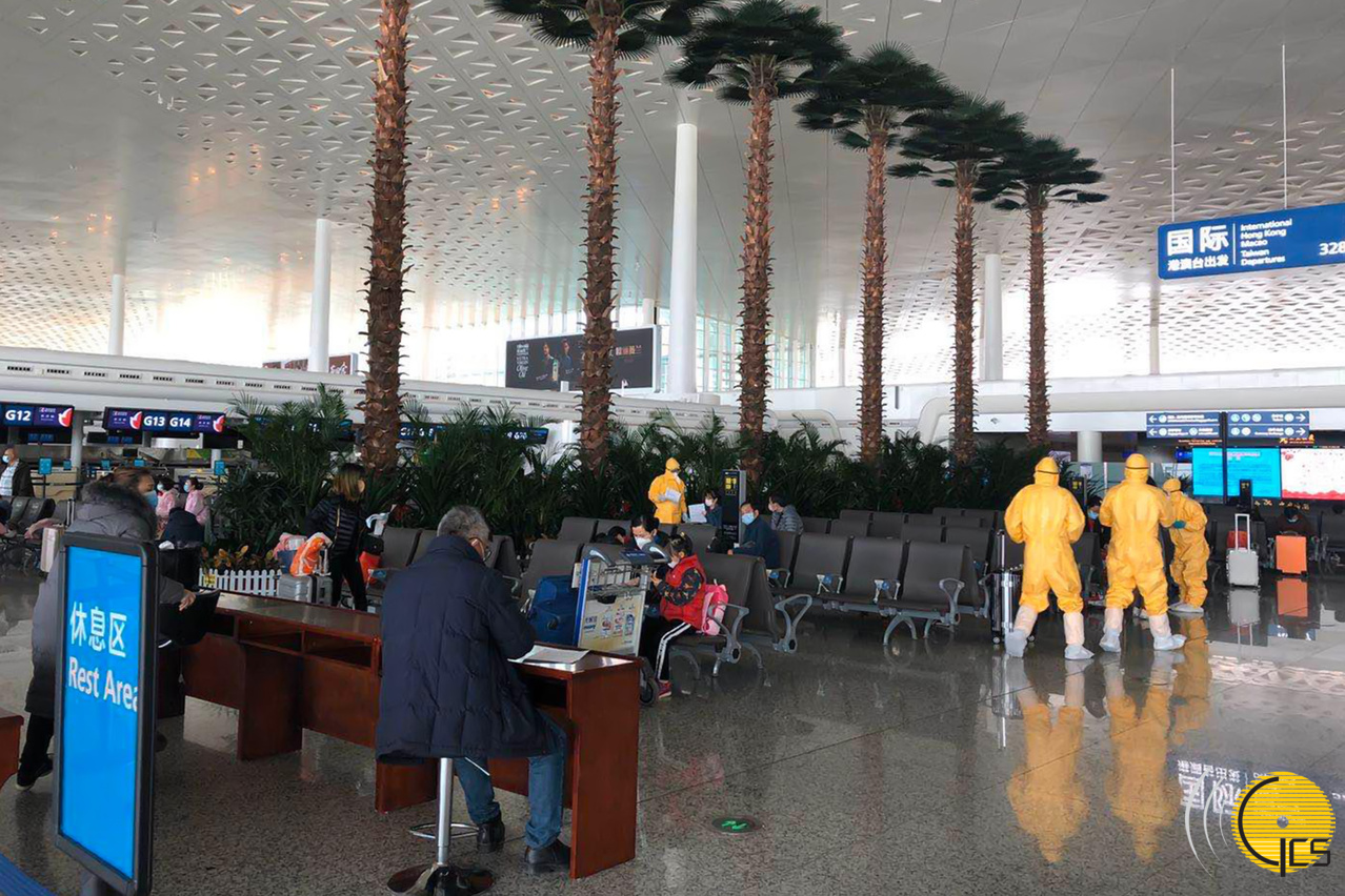 Macao residents intending to take the Government chartered flight await at the Wuhan Tianhe International Airport, Hubei Province.