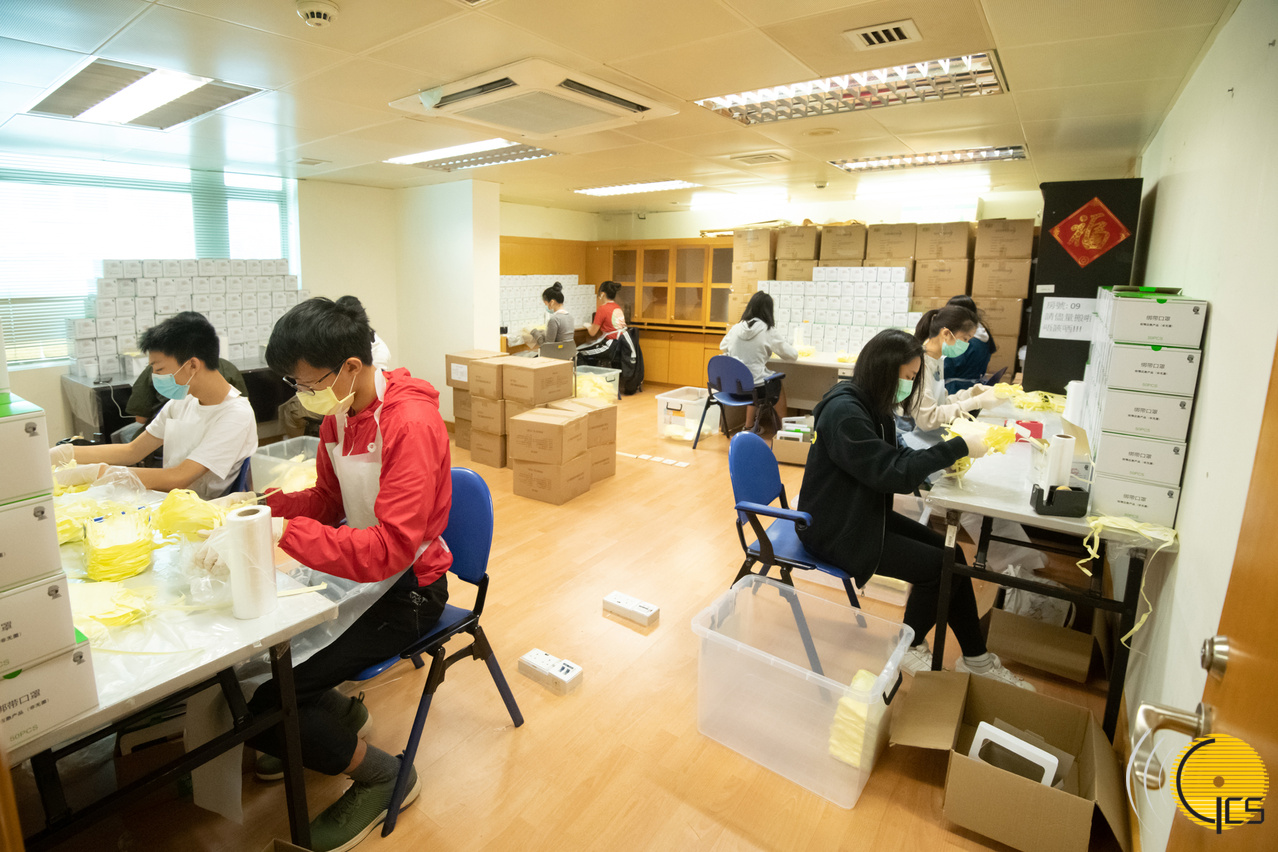 • During the time fighting against COVID-19, young people and students – recruited by the Health Bureau and the Education and Youth Affairs Bureau – take part as volunteers for packaging face masks supplied to the Macao public. The students' contribution, while class suspension, demonstrate their spirit of mutual help and selfless commitment.