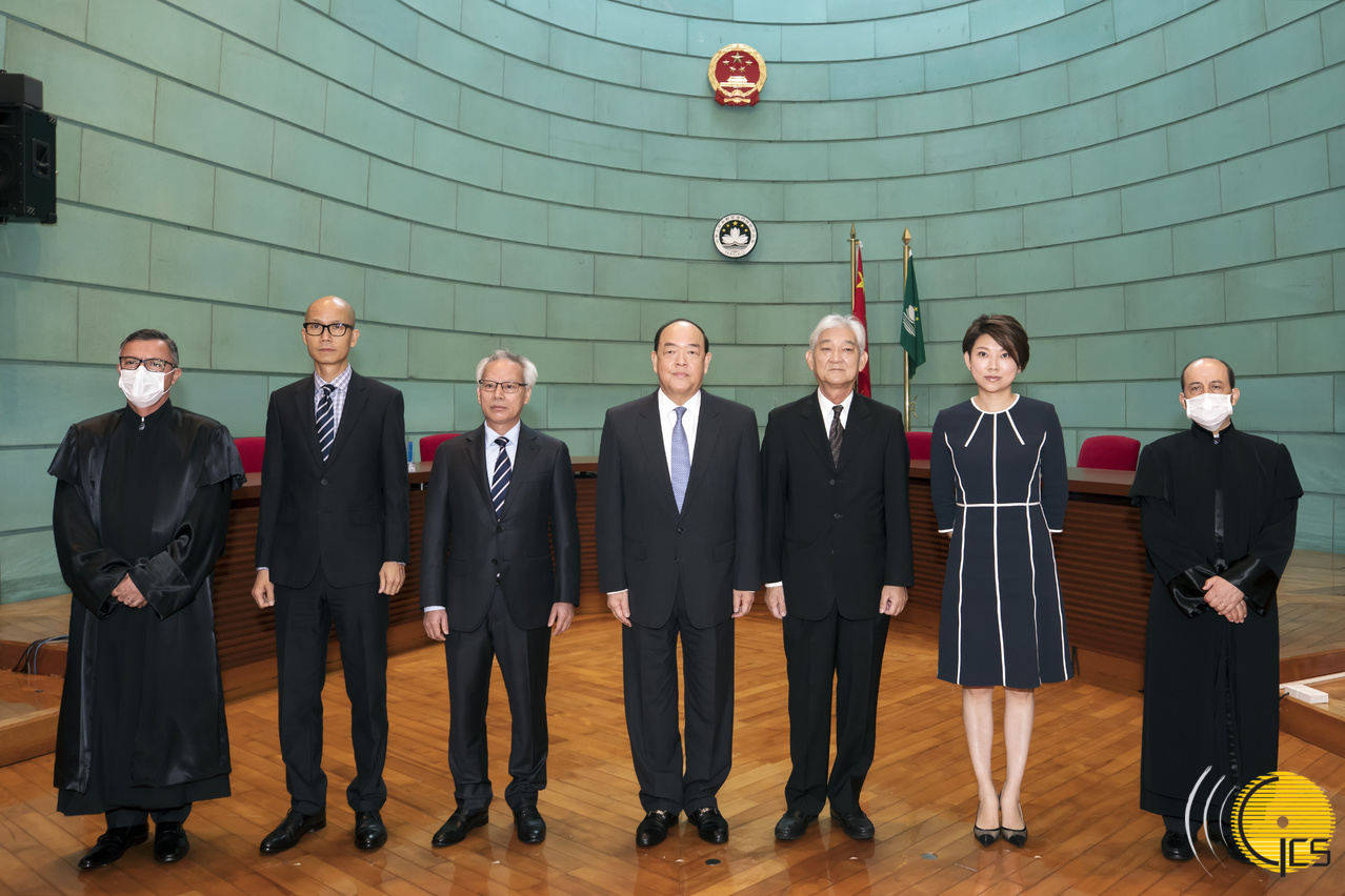 The Chief Executive, Mr Ho Iat Seng, attends the swearing-in ceremony of Court of Second Instance judge, Mr Rui Carlos dos Santos Pereira Ribeiro, and President of the Collegial Panels of the Court of First Instance, Mr Jerónimo Alberto Gonçalves Santos.