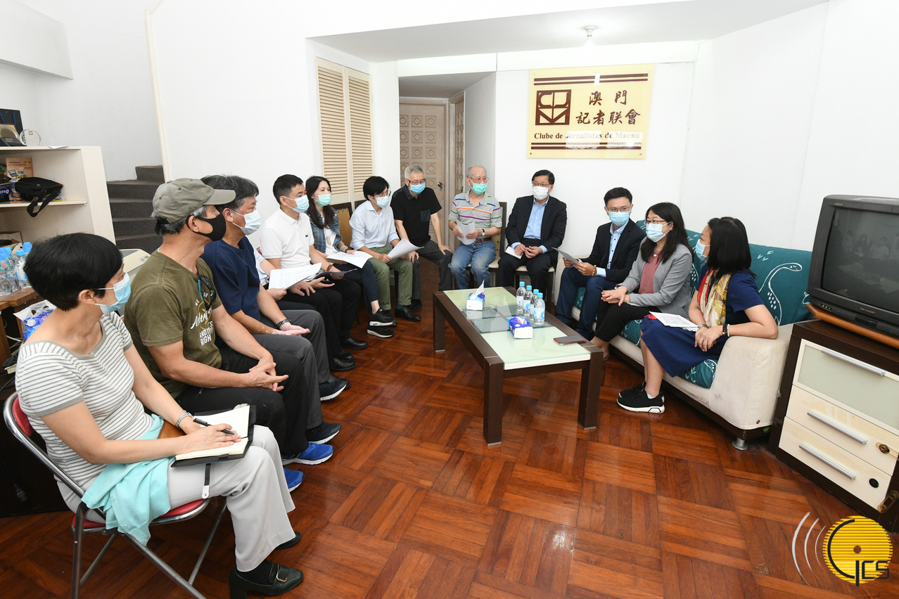 The Director of the Government Information Bureau, Ms Chan Lou, leads a team to meet with representatives of the Macao Journalists Club, in order to exchange views with the association on issues concerning development of local media sector.