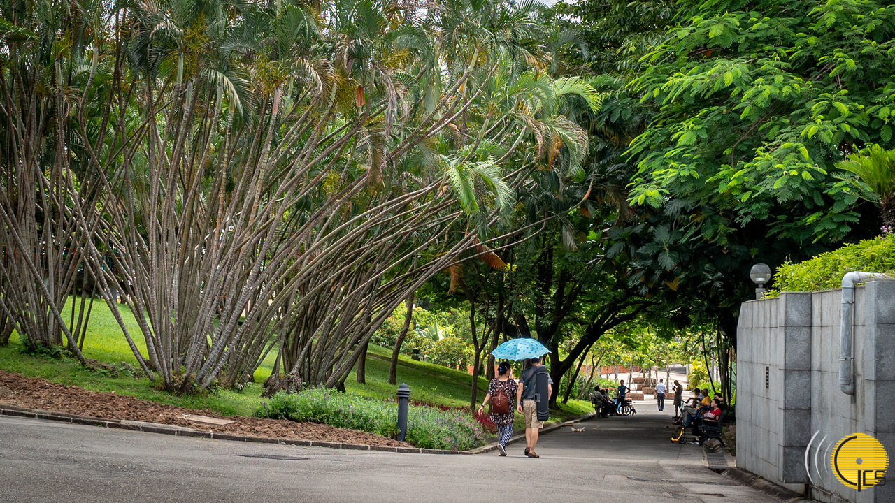 • The zigzag bridge spans an artificial lake and gives access to an extensive lawn dotted with many footpaths, that in turn interlink with fitness trails that run through the entire park. While walking the trails, parkgoers can enjoy the sight of an ornamental waterfall and a green aviary.