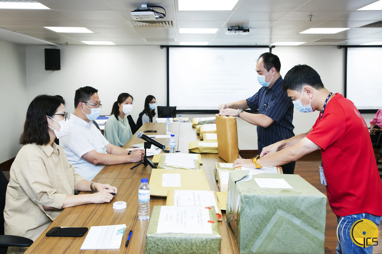 • Officials of the Infrastructure Development Office open tender documents for the phase one design and renovation work for slopes within the site planned for a public housing project at Av. Wai Long da Taipa.