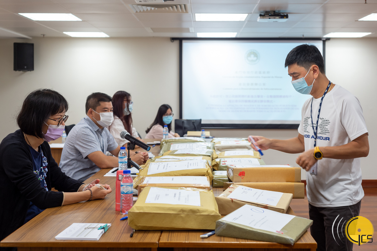 Officials of the Infrastructure Development Office open tender documents for the construction of a new headquarters building in Taipa for the Macao Customs Service.