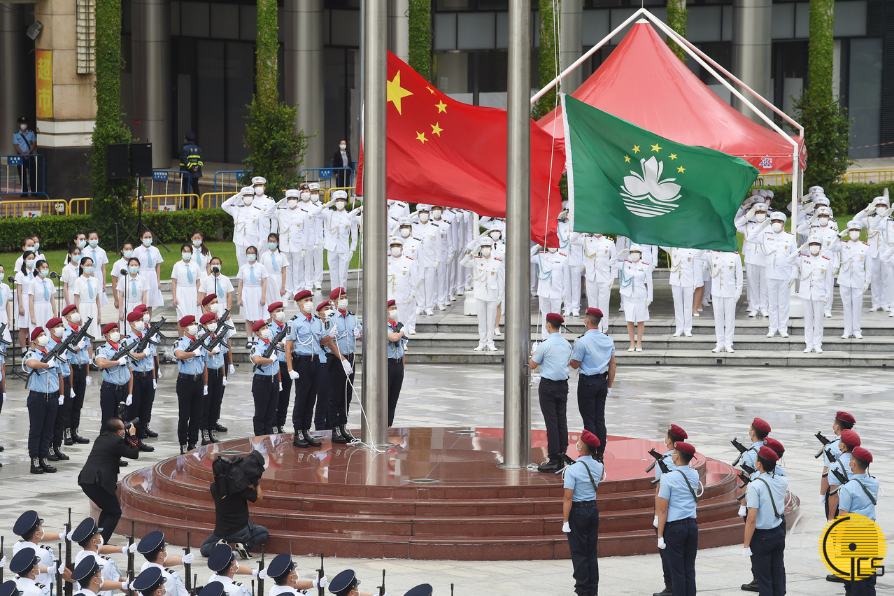 The flag-raising ceremony on the 71st National Day is attended by the Chief Executive, Mr Ho Iat Seng, and representatives from, respectively, the Liaison Office of the Central People's Government in the Macao Special Administrative Region (SAR); the Office of the Commissioner of the Ministry of Foreign Affairs of the People's Republic of China in the Macao SAR; and the Macao Garrison of the People's Liberation Army; as well as by heads of the Macao legislature and judiciary; principal officials; and people from across the community.