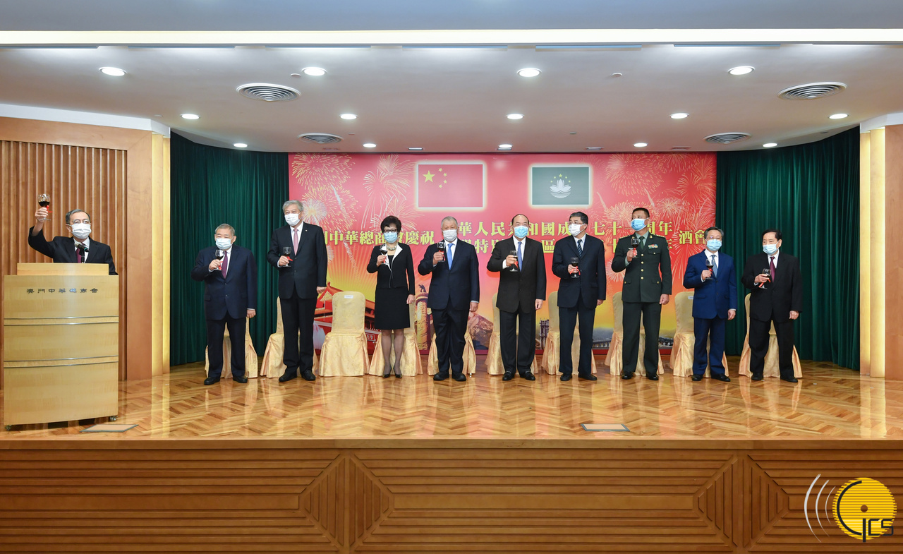 The Chief Executive, Mr Ho Iat Seng, attends a reception, hosted by the Macao Chamber of Commerce, to mark the 71st anniversary of the founding of the People's Republic of China and the 21st anniversary of the establishment of the Macao Special Administrative Region.