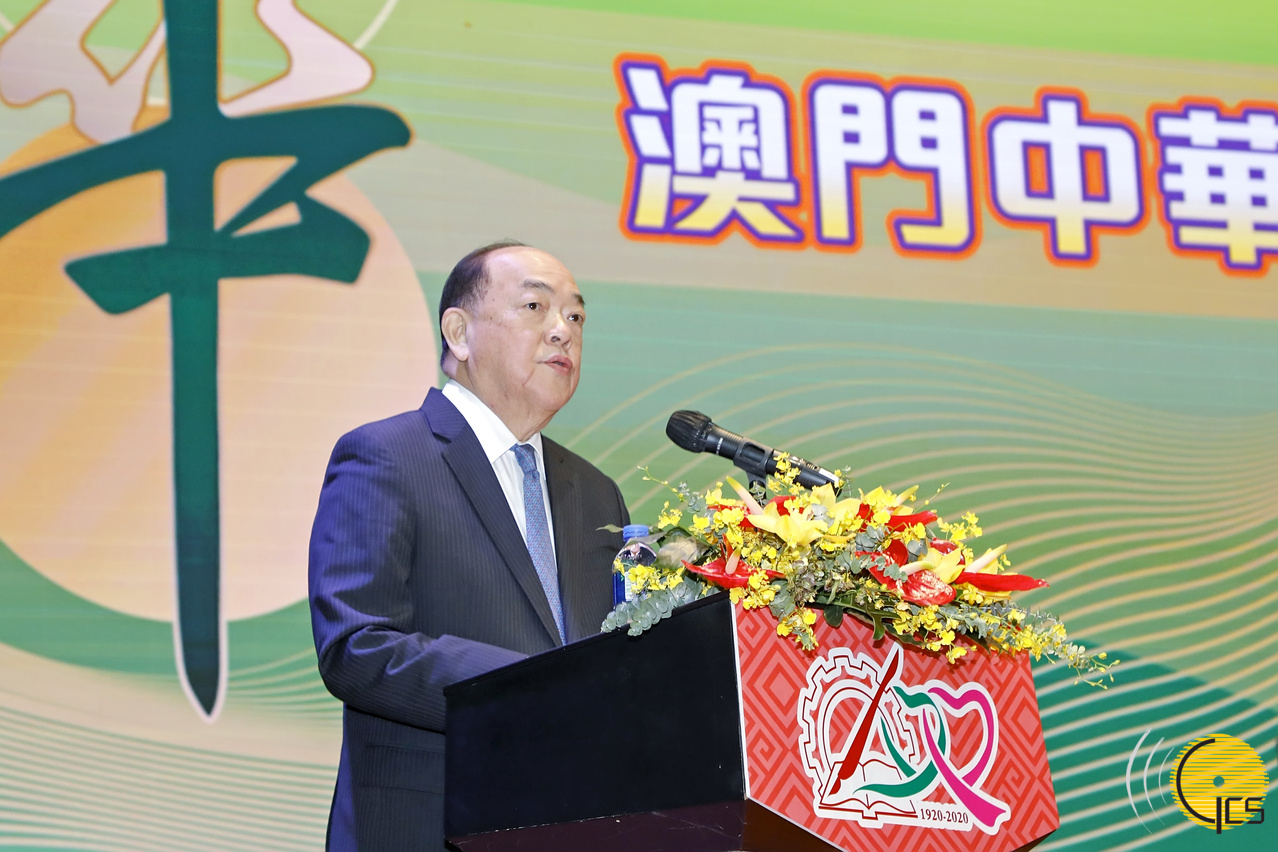 • The Chief Executive, Mr Ho Iat Seng, delivers a speech at a ceremony to celebrate the 100th anniversary of the Chinese Educators' Association of Macau.