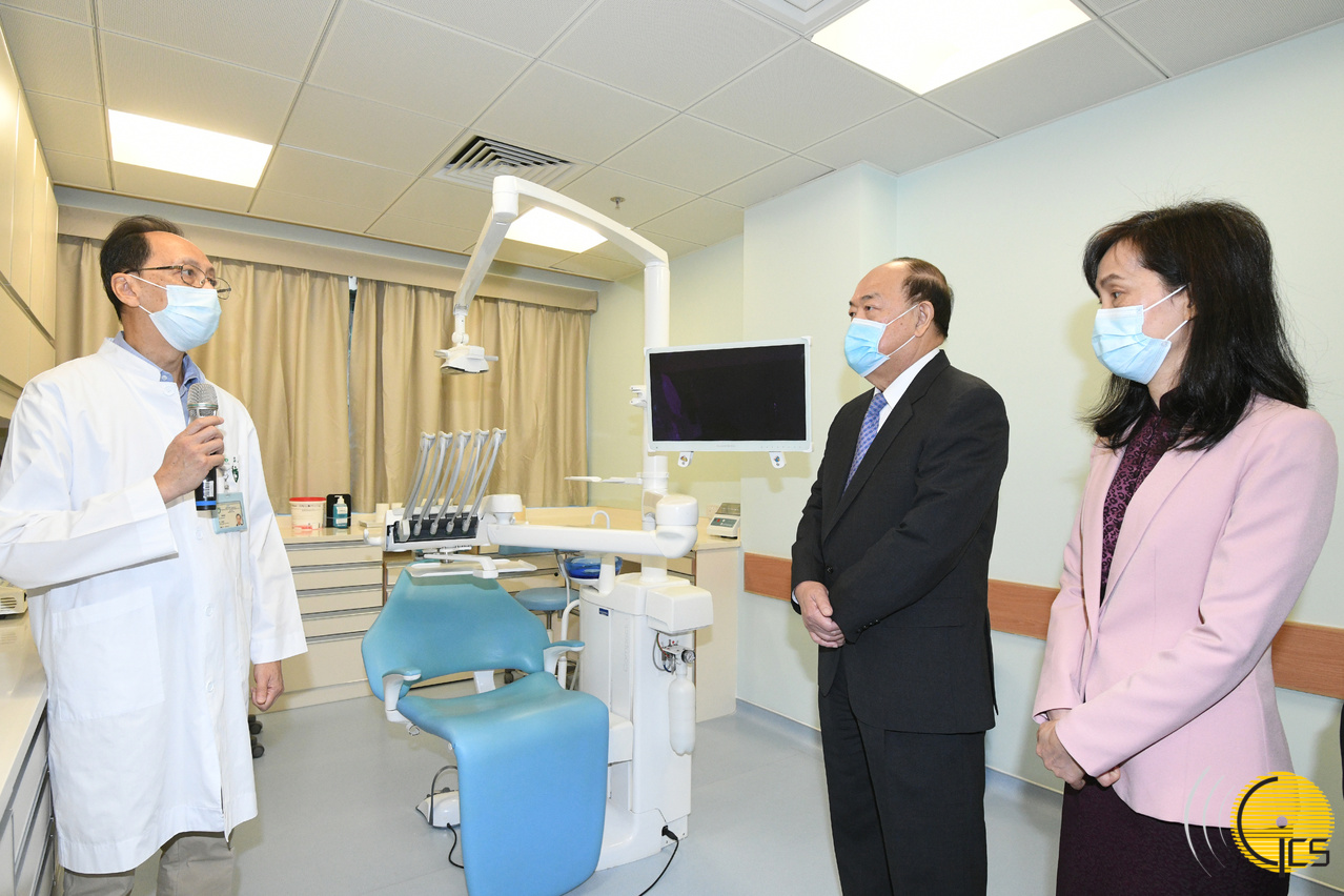 • The Chief Executive, Mr Ho Iat Seng, and the Secretary for Social Affairs and Culture, Ms Ao Ieong U, tour facilities at Praia do Manduco Health Centre.