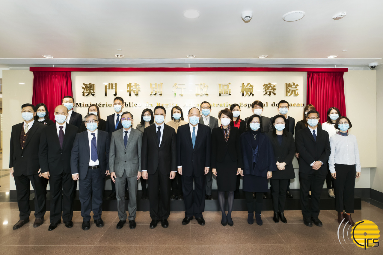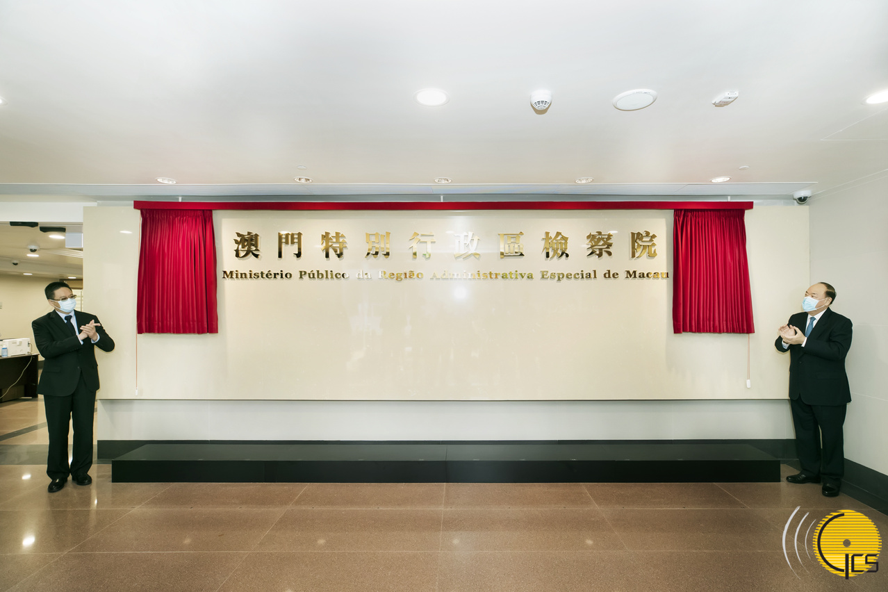 • The Chief Executive, Mr Ho Iat Seng, poses for a group photograph with the Public Prosecutor-General, Mr Ip Son Sang, at the launching ceremony of the Public Prosecutions Office building.