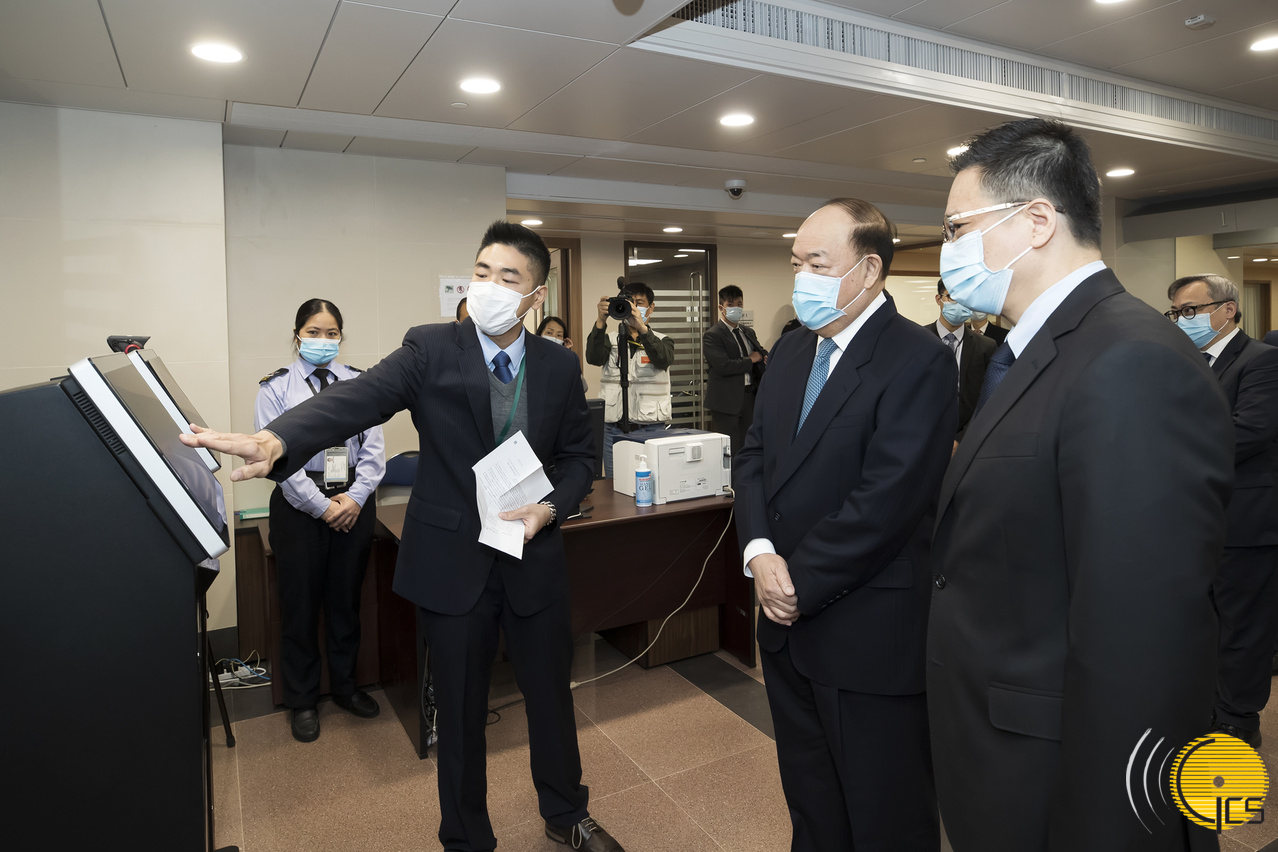 • The Chief Executive, Mr Ho Iat Seng, is briefed while at the reception of the Public Prosecutions Office building's Criminal Proceedings Office.