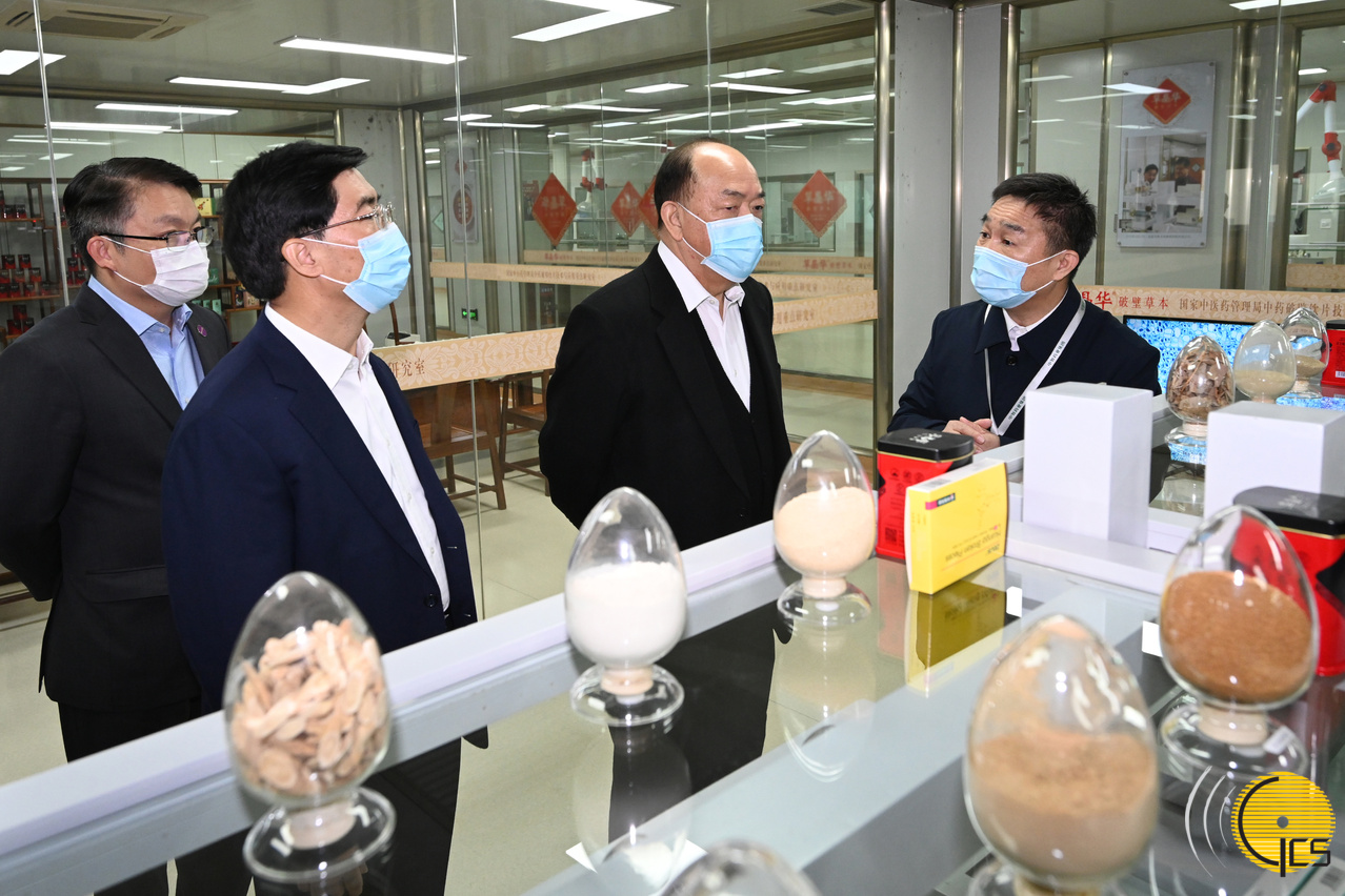 The Chief Executive, Mr Ho Iat Seng, visits a pharmaceutical company while in Zhongshan for his four-day tour to the Guangdong-Hong Kong-Macao Greater Bay Area.