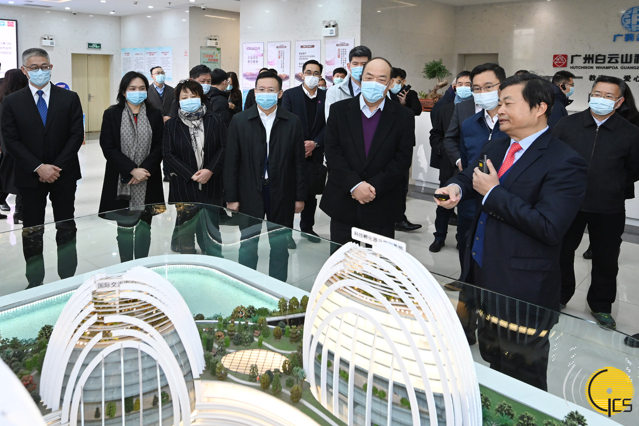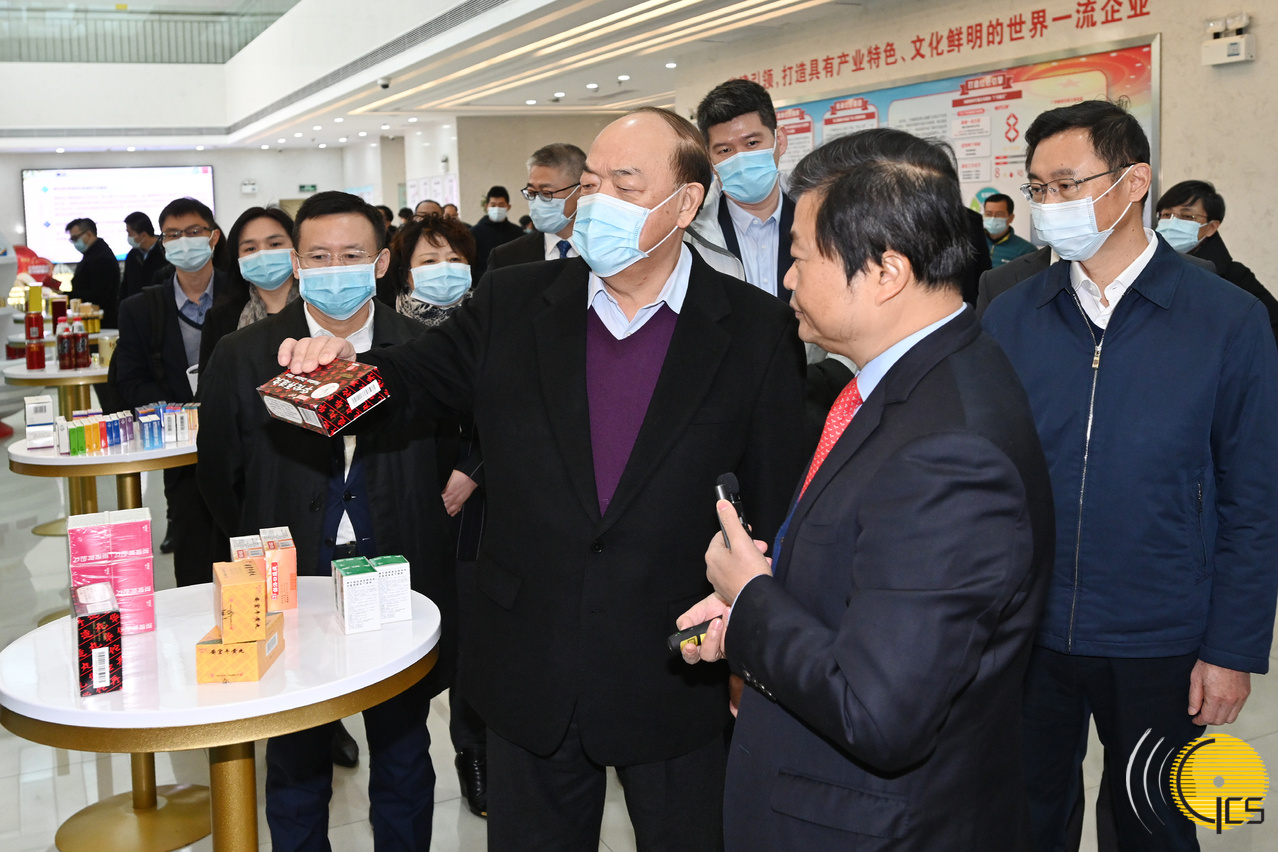 The Chief Executive, Mr Ho Iat Seng, arrives in Guangzhou on 9 January after visiting Foshan during his tour to the Guangdong-Hong Kong-Macao Greater Bay Area. While in Guangzhou, he visited a pharmaceutical company, which is the largest single herb production company in southern China. Mr Ho was accompanied by Vice Governor of Guangdong, Mr Zhang Xin, and Mayor of Guangzhou, Mr Wen Guohui. During the visit, Mr Ho received a briefing on the latest developments of the company and its participation under the Guangdong-Macao cooperation framework.