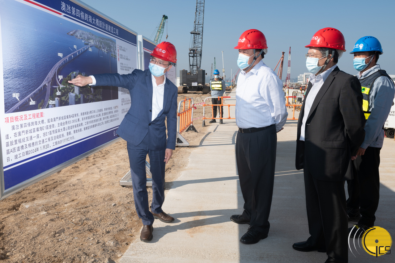 • The Chief Executive, Mr Ho Iat Seng, is briefed on the progress of the fourth Macao-Taipa cross-harbour bridge.