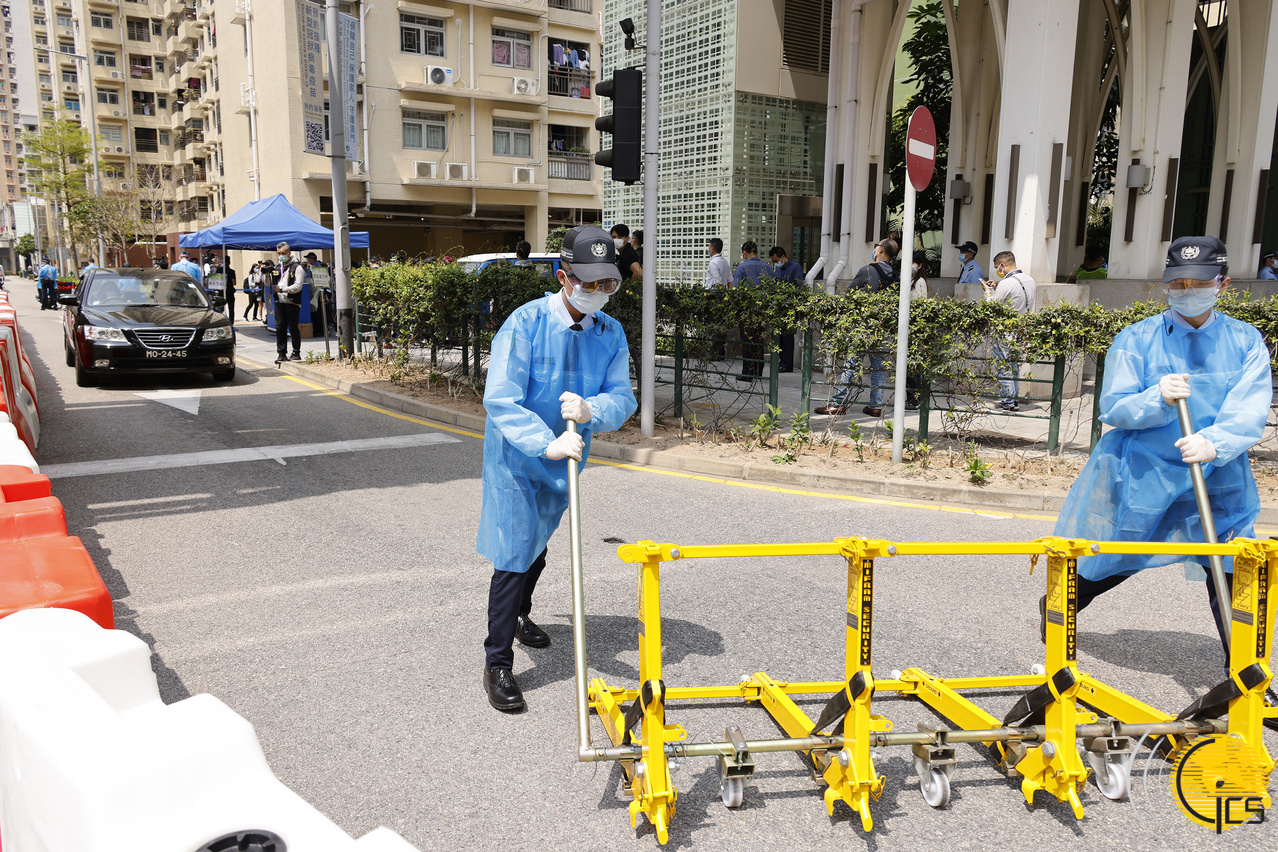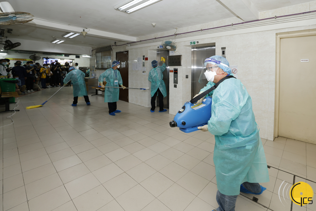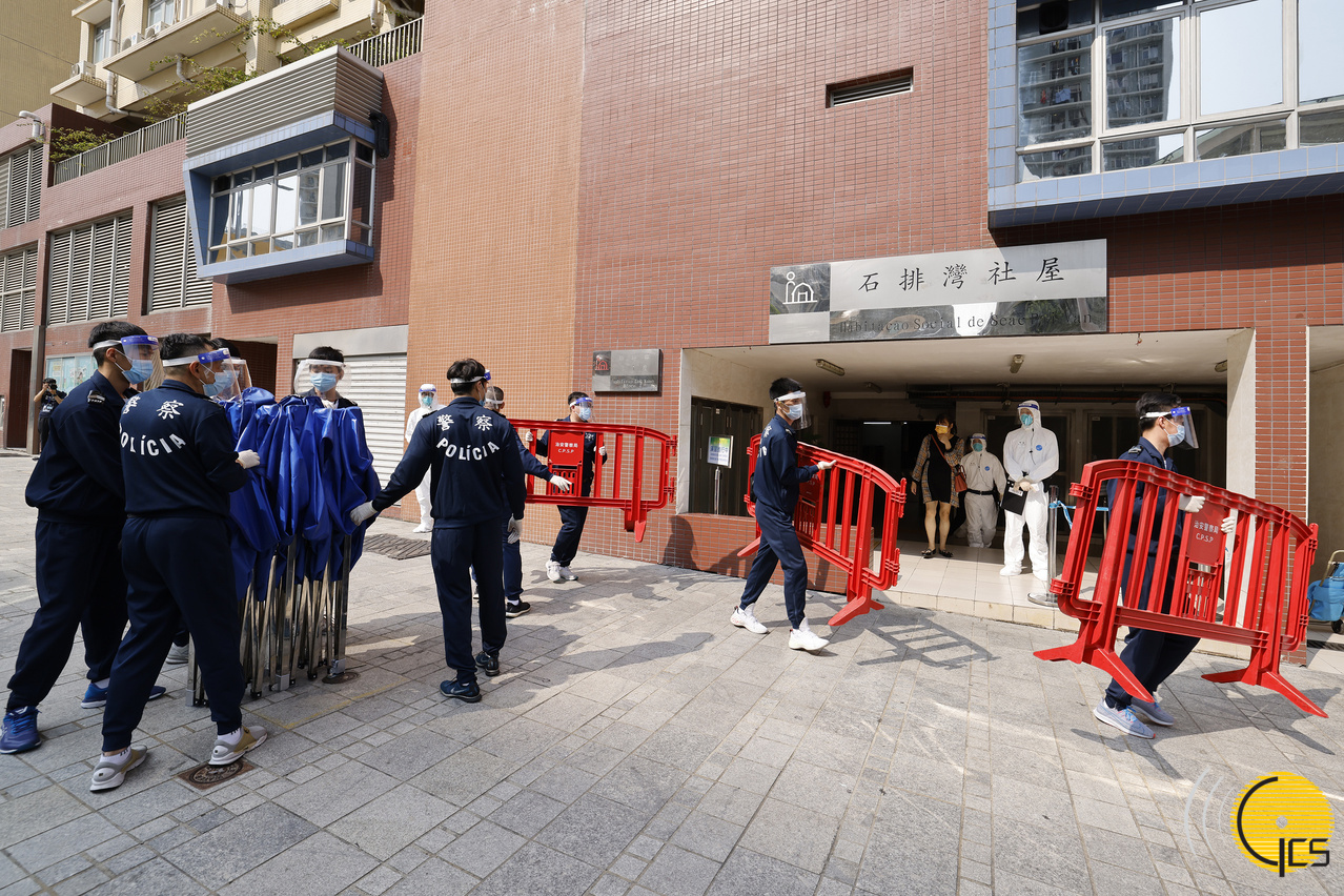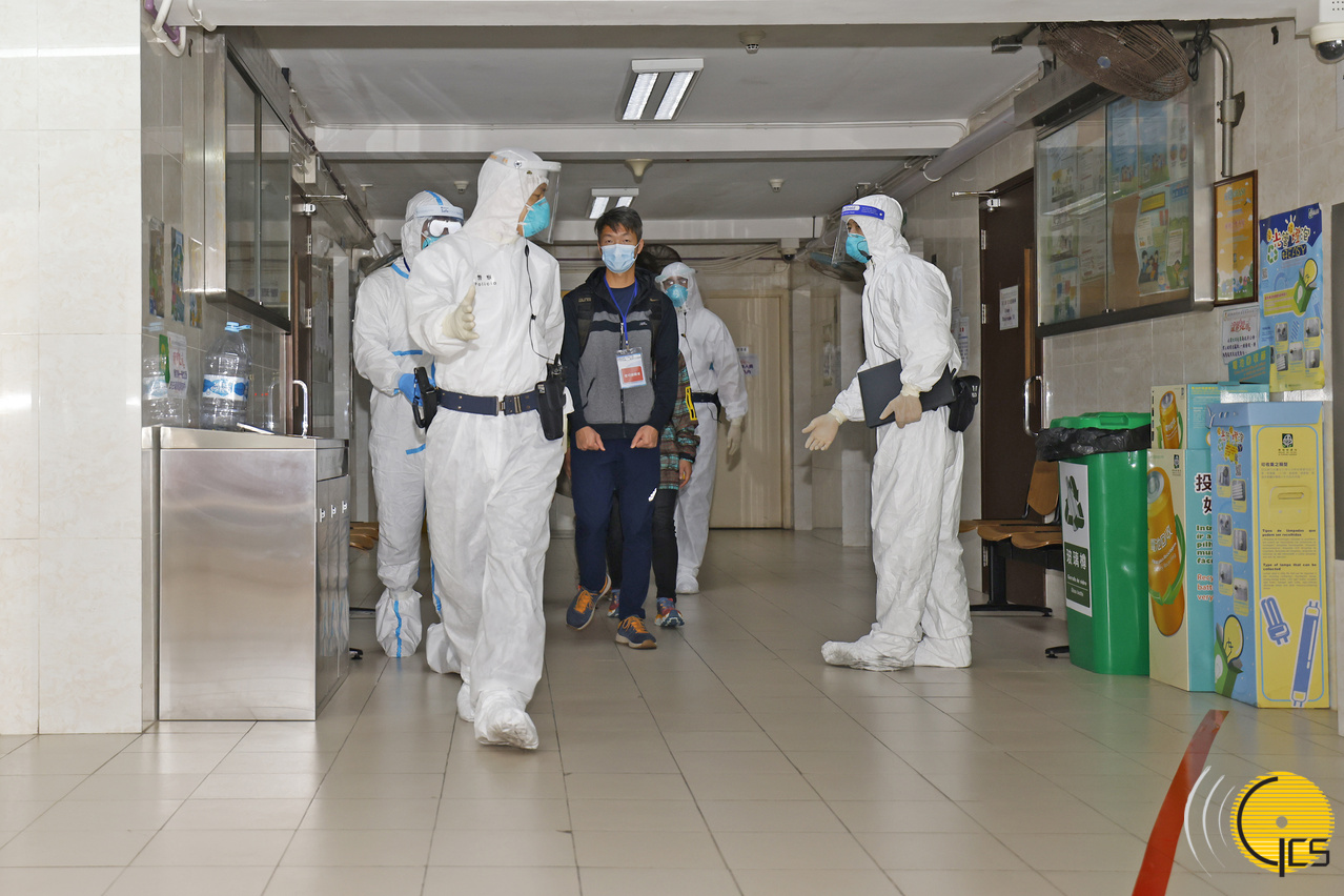 • The Novel Coronavirus Response and Coordination Centre and the Civil Protection Operations Centre conduct a drill, at Lok Kuan Building in Seac Pai Van, to simulate the district- and risk-specific epidemic prevention plan.