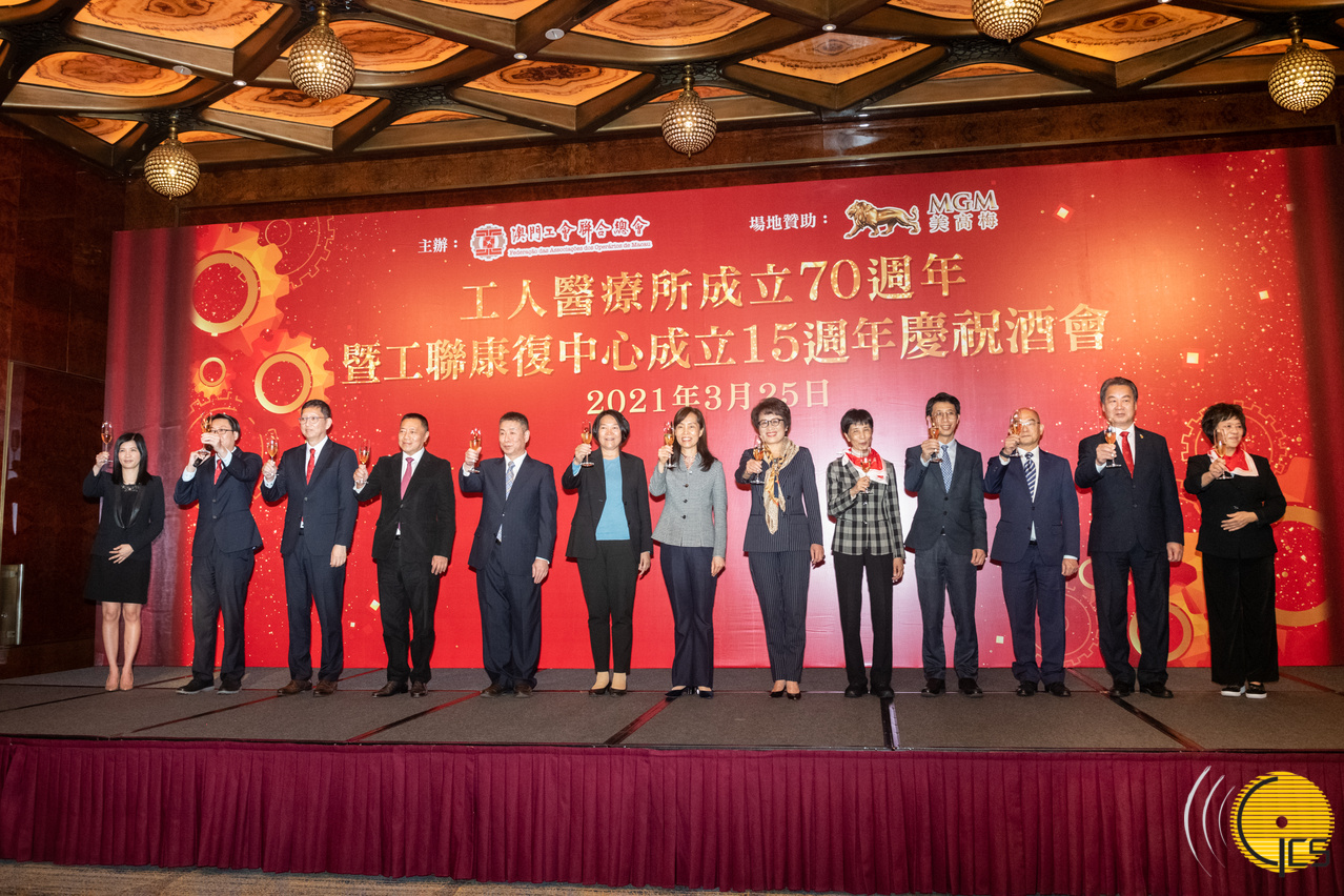 The Secretary for Social Affairs and Culture, Ms Ao Ieong U, represents the Chief Executive at a reception hosted by the Macao Federation of Trade Unions to mark the 70th anniversary of its medical clinic and the 15th anniversary of its rehabilitation centre.