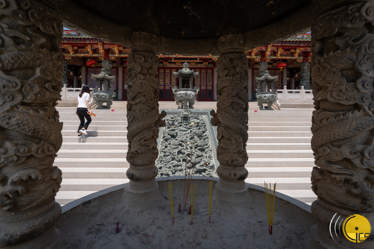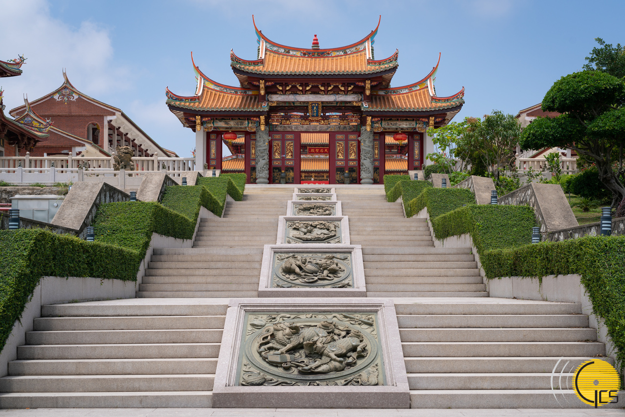 • Captivating images are detailed in relief on pillars at the main pavilion of A-Ma Cultural Village.