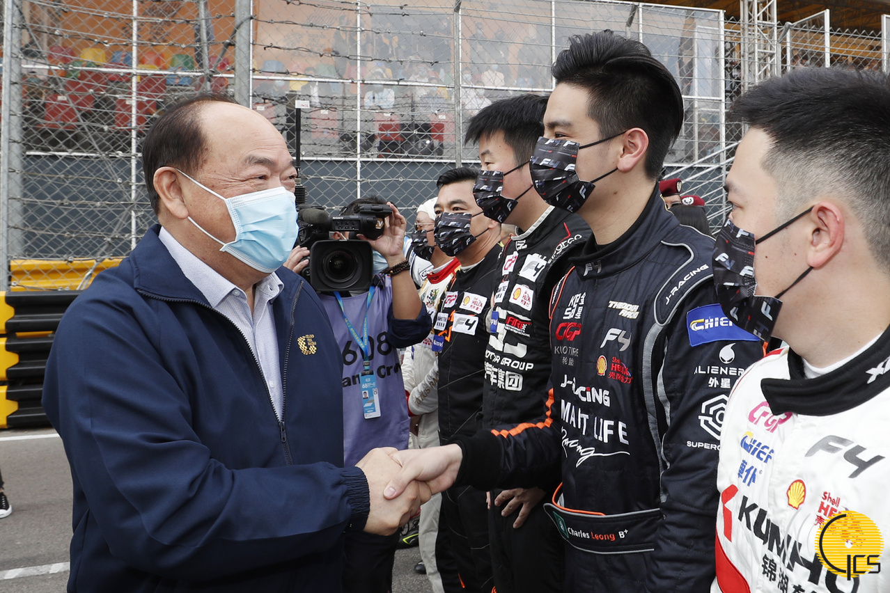 • The Chief Executive, Mr Ho Iat Seng, shakes hands with racers taking part in Formula 4 Macau Grand Prix of the 68th Macau Grand Prix.