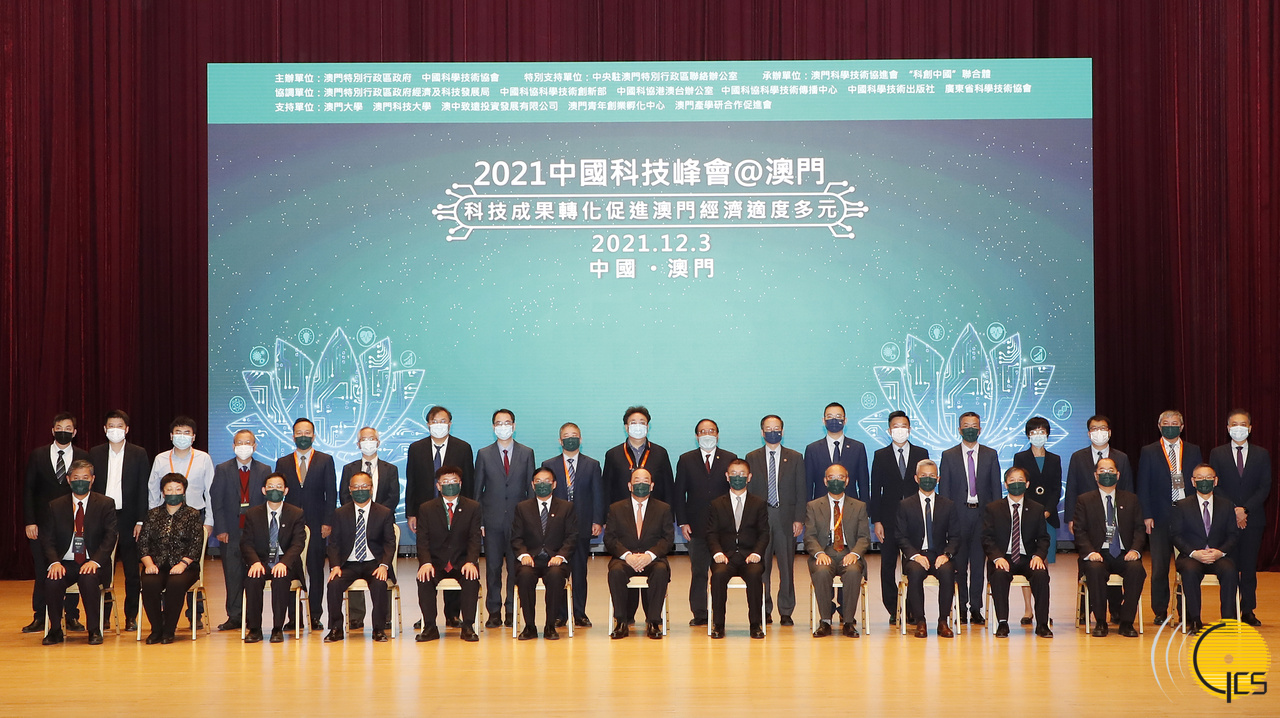 • The Chief Executive, Mr Ho Iat Seng, attends the opening of the 2021 China Technology Summit - Promoting Macao's Economic Diversification with Application of Technology., and poses for a photo with the participants.