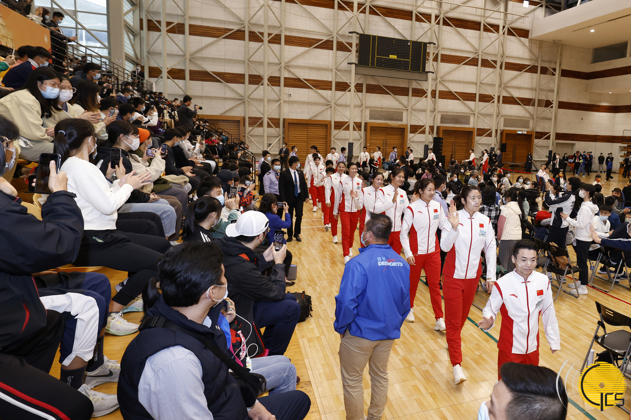 • Elite Olympians march around the Olympic Sports Centre to get closer together with Macao young athletes.