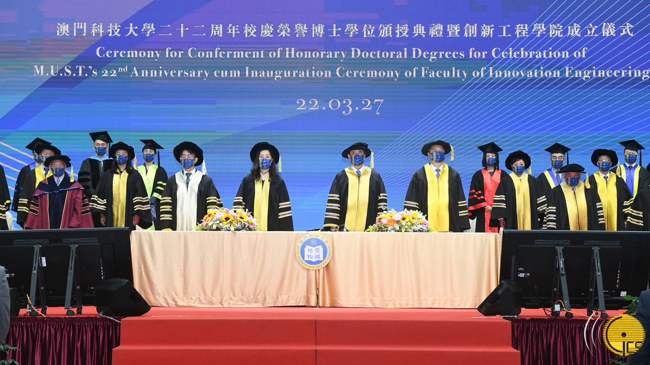 • The Secretary for Social Affairs and Culture, Ms Ao Ieong U, attends the conferment of honorary doctoral degrees for celebration of the 22nd anniversary of the Macau University of Science and Technology.