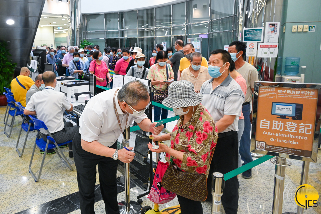 • Registration for the third round of the electronic consumption benefits plan starts today. Staff of Government departments, financial institutions, and social service organisations assist residents in registration.