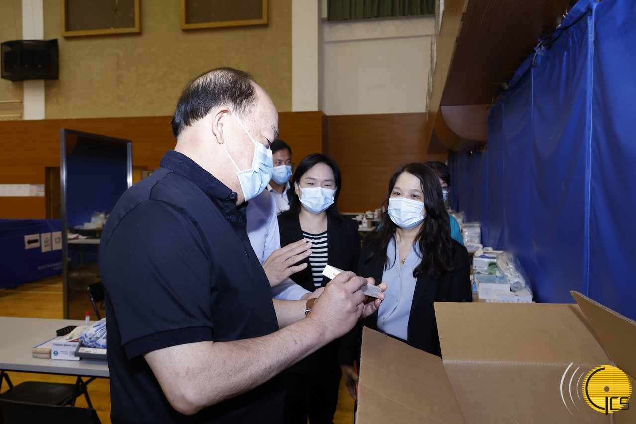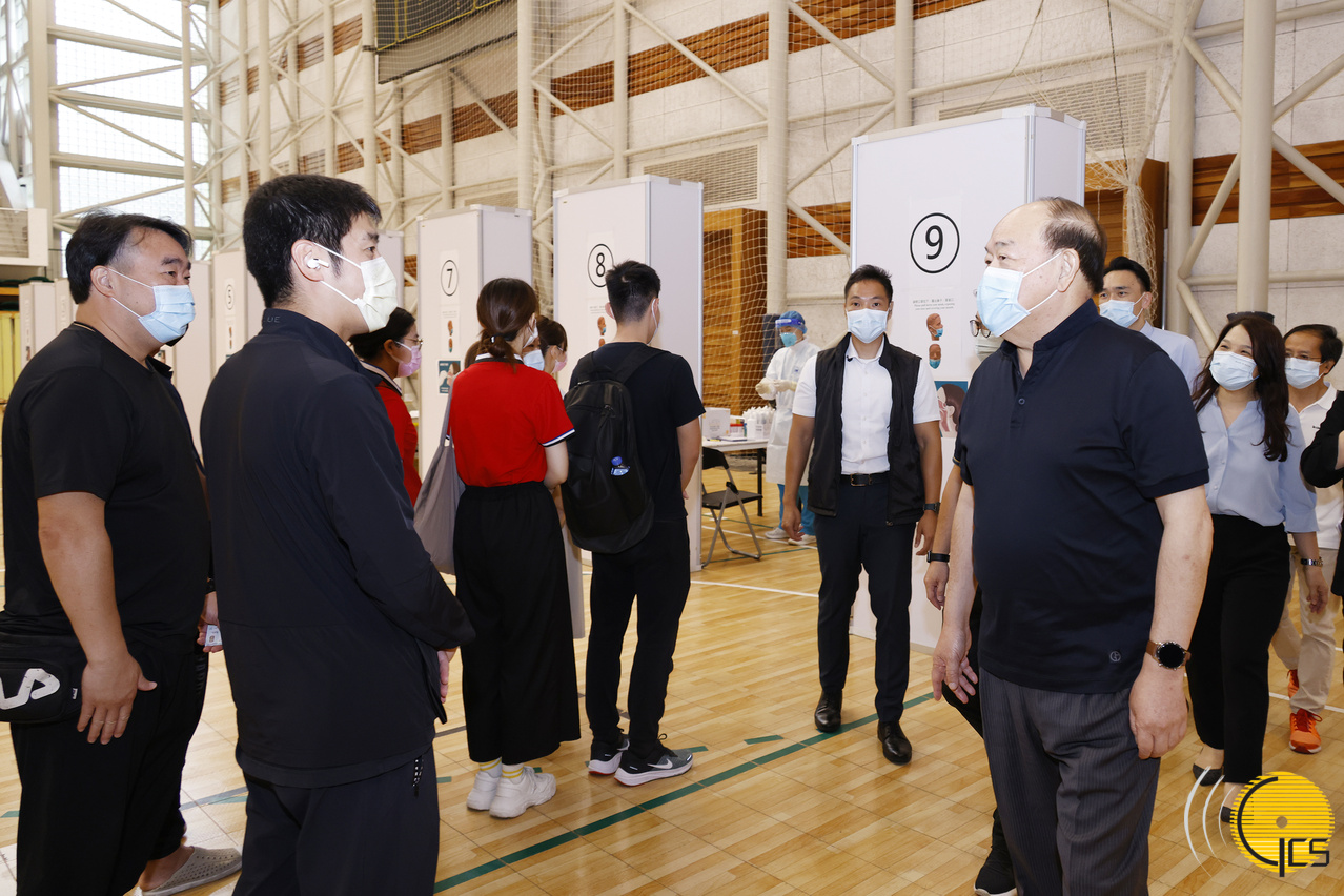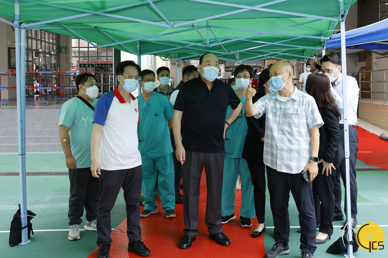 • The Chief Executive, Mr Ho Iat Seng, inpects several nucleic acid testing stations to make sure everything is in order.